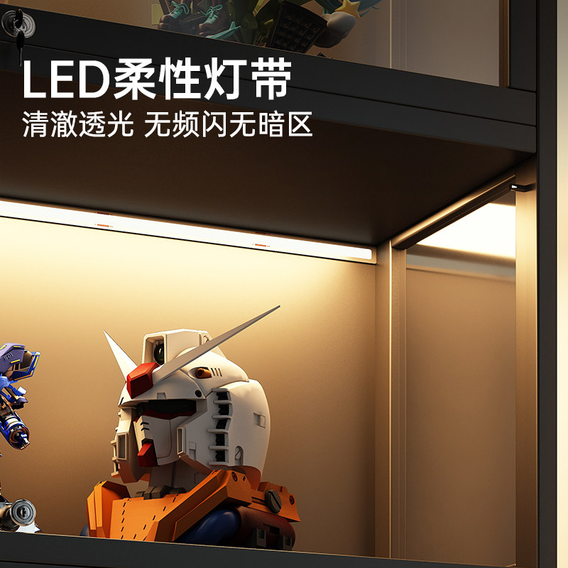 手办展示柜带锁亚克力展示架透明带灯防尘模型积木摆件货架展示盒