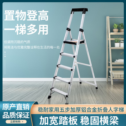 稳耐家用折叠人字梯五步加厚铝合金伸缩升降室内多功能爬梯P275