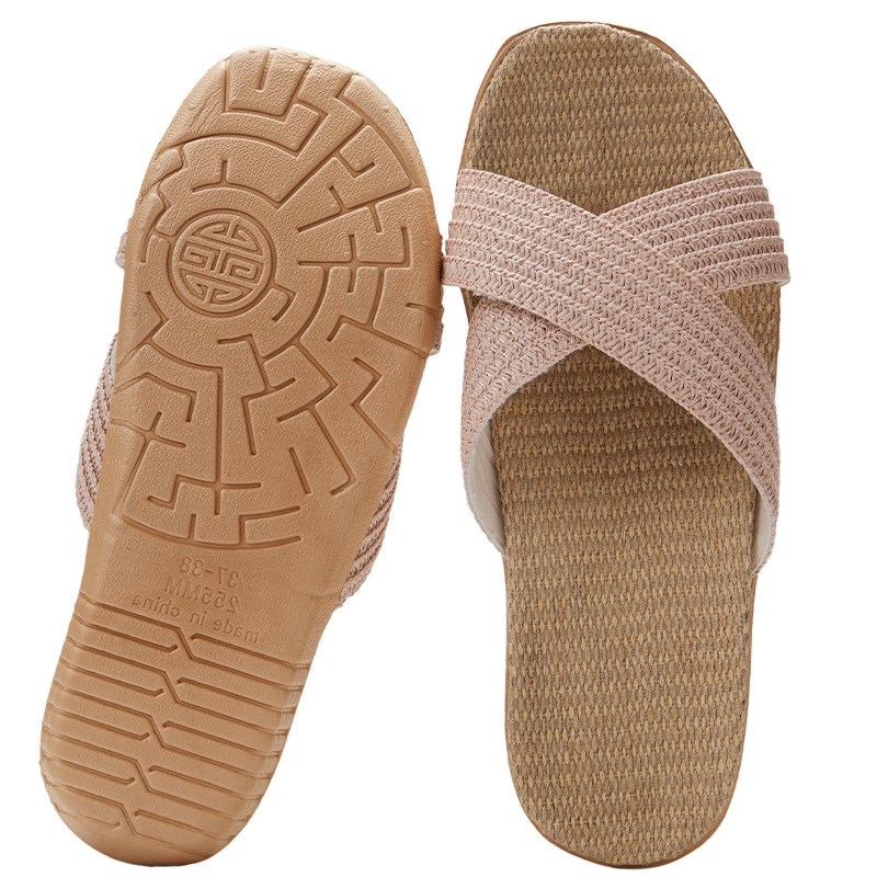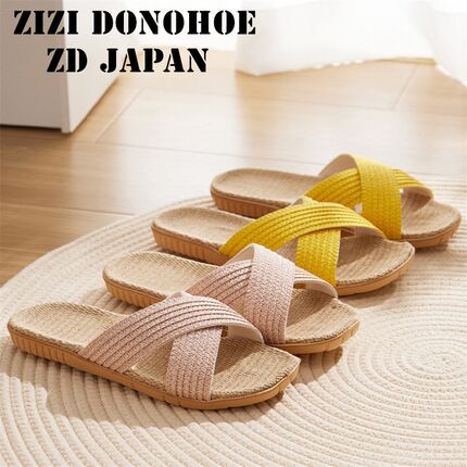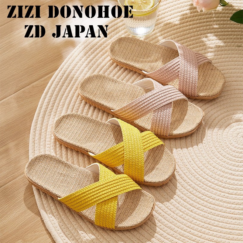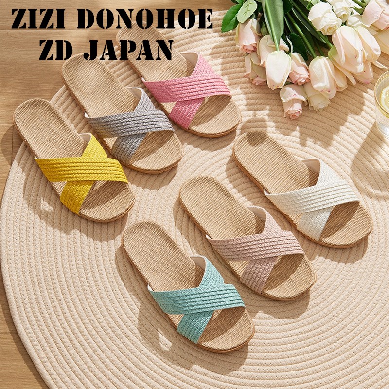 日本ZD软底防滑居家亚麻拖鞋夏室内无声情侣家用透气吸汗凉拖鞋女
