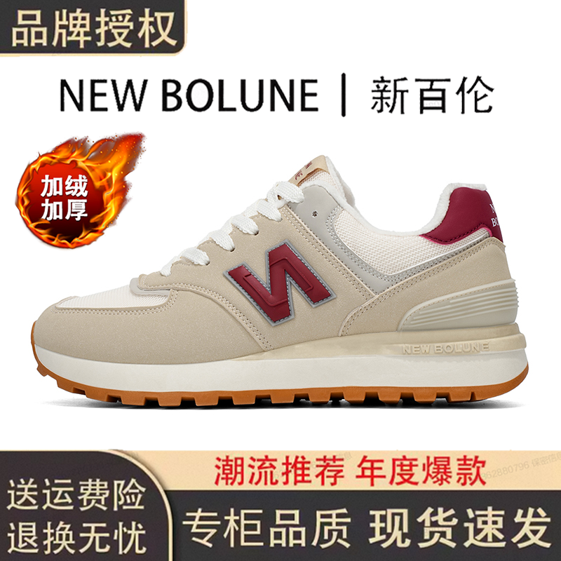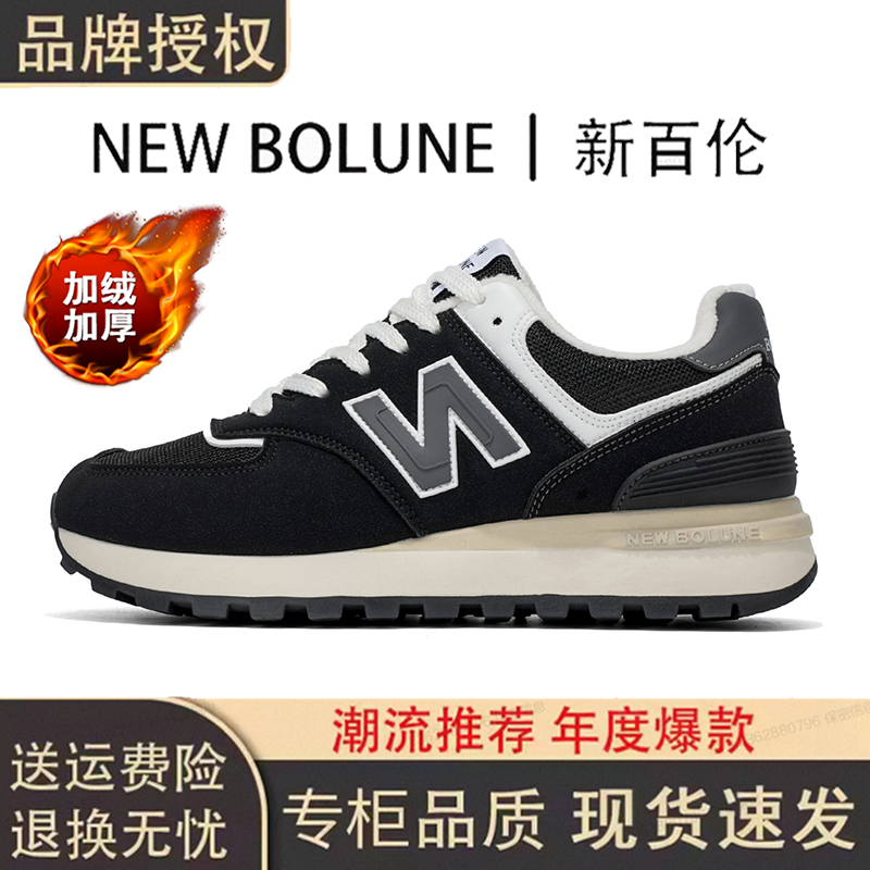 新百伦冬季加绒加厚防滑情侣厚底增高透气鞋男轻便耐磨潮流跑步鞋
