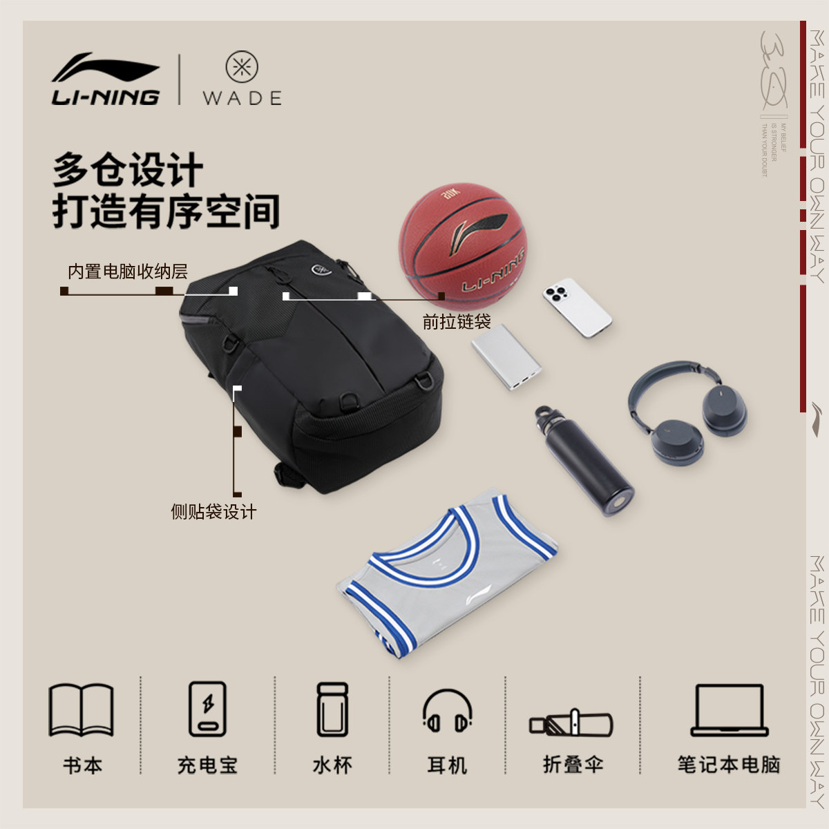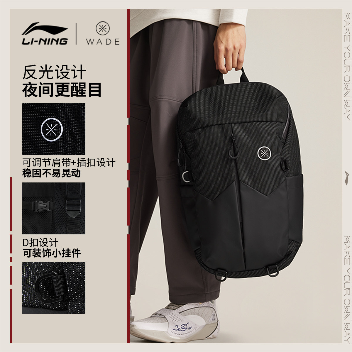 李宁双肩包男士新款韦德篮球背包