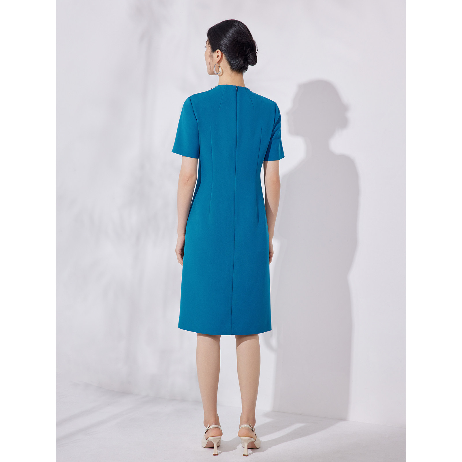BBLLUUEE粉蓝衣橱2025夏装新款精简重工钉钻精致优雅短袖连衣裙女