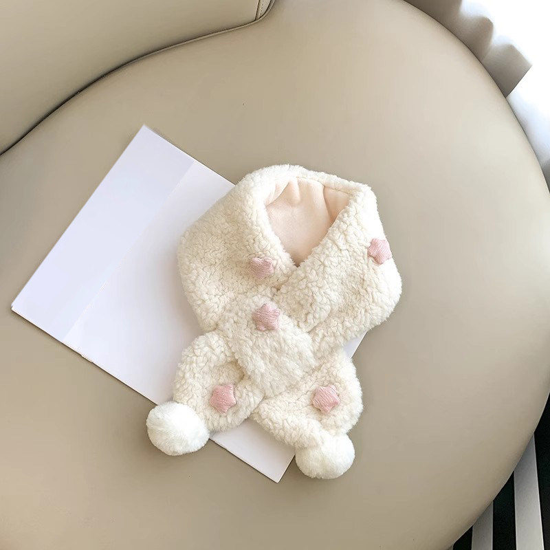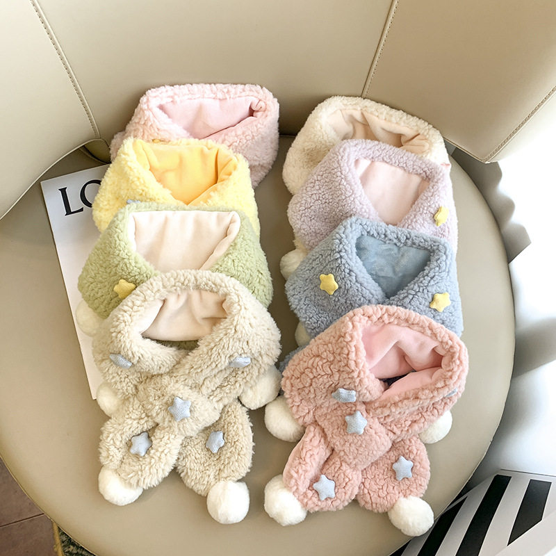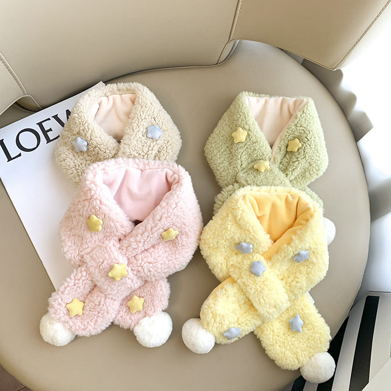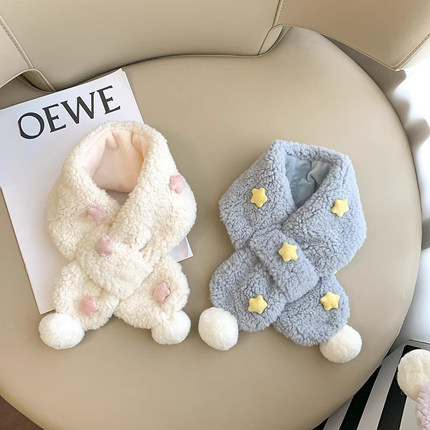 卡通星星软糯毛绒儿童围巾男女冬季加厚脖套宝宝小孩护颈保暖围脖