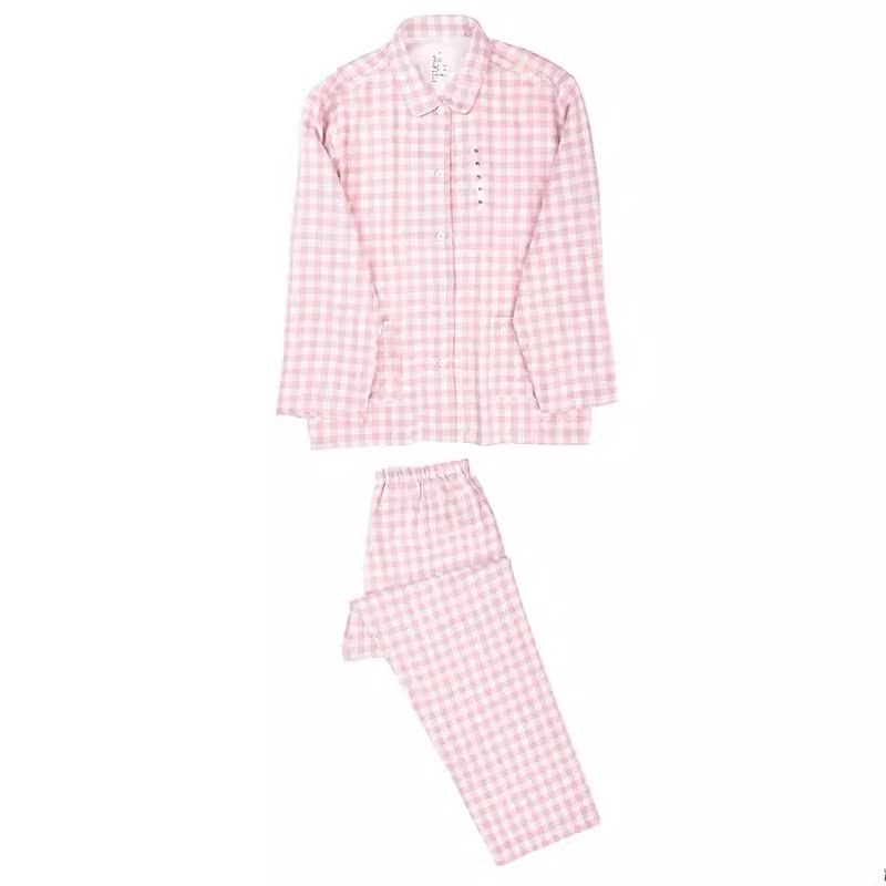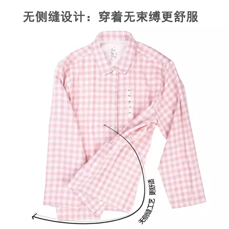 日式双层纱睡衣长袖纯棉女春夏季专柜品质格子男士长裤家居服套装