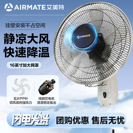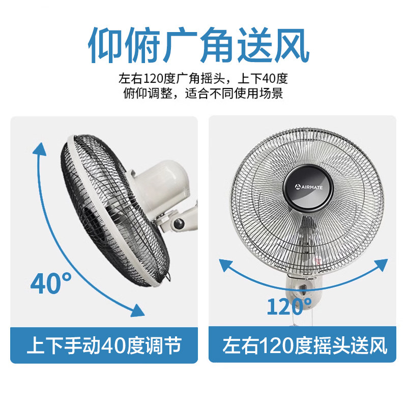 艾美特风扇16寸壁扇家用挂壁风扇宿舍工厂学校摇头遥控强力电风扇