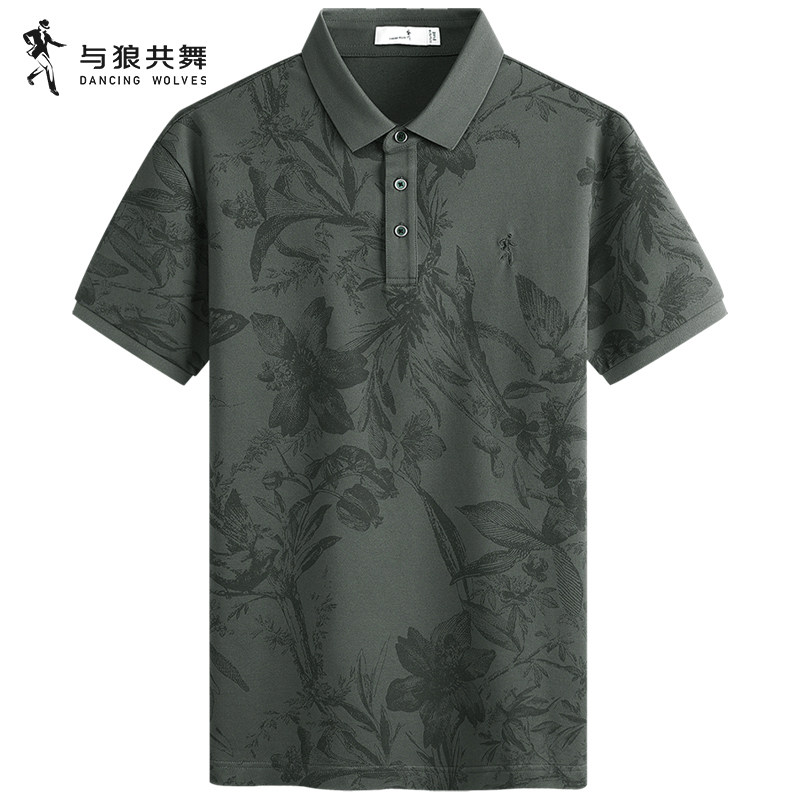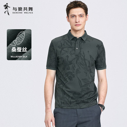 【桑蚕丝】与狼共舞翻领短袖T恤男士2025夏季新款花卉印花Polo衫