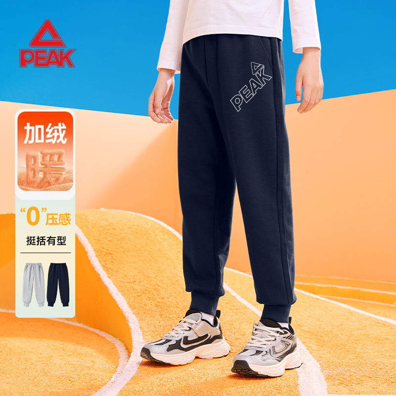 匹克童装男童裤子加绒秋冬装中大童长裤一体绒帅气儿童运动裤训练