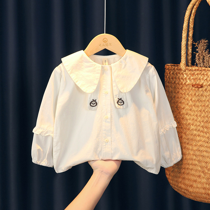 女童衬衫春秋2026新款长袖娃娃领衬衣纯棉韩系洋气公主女宝宝上衣