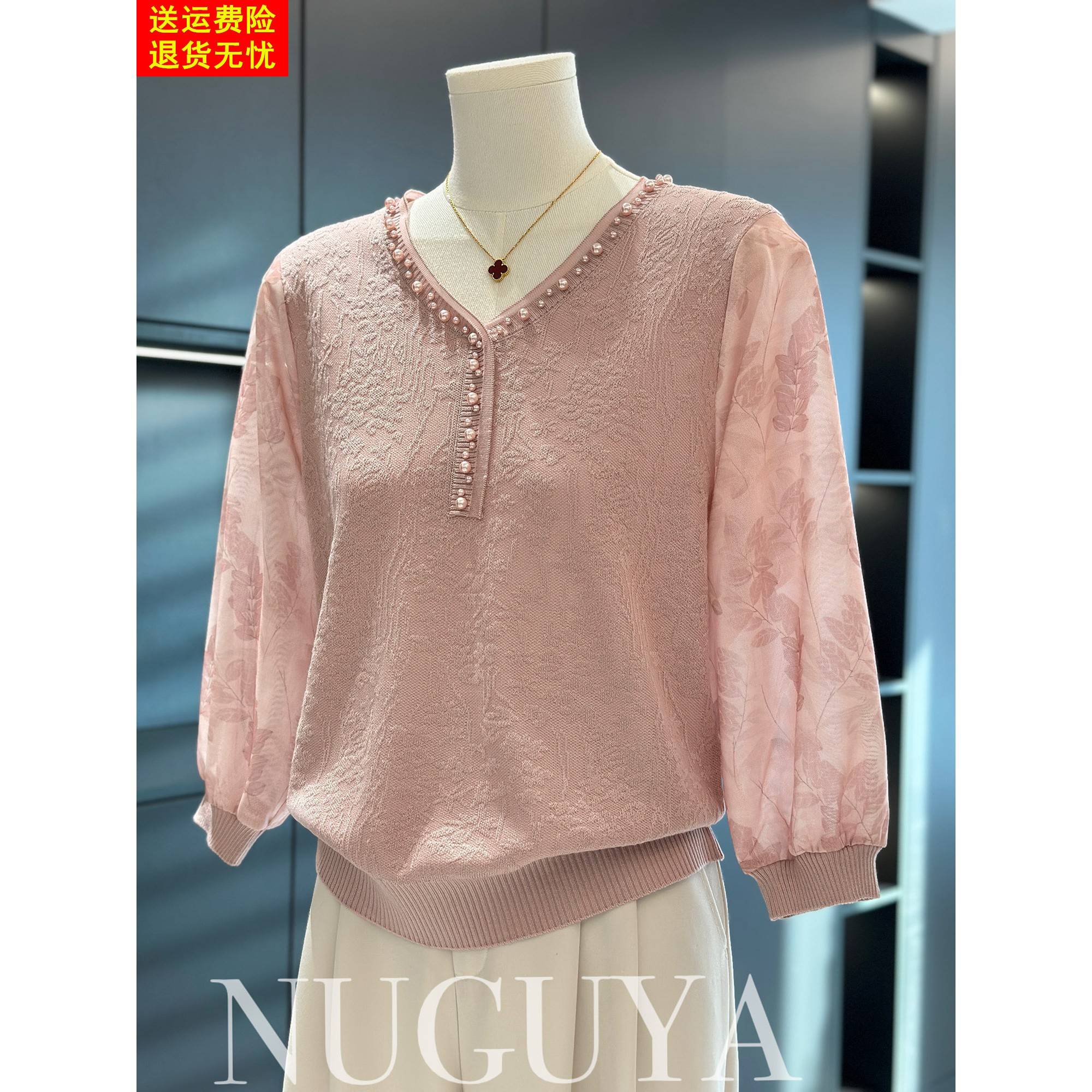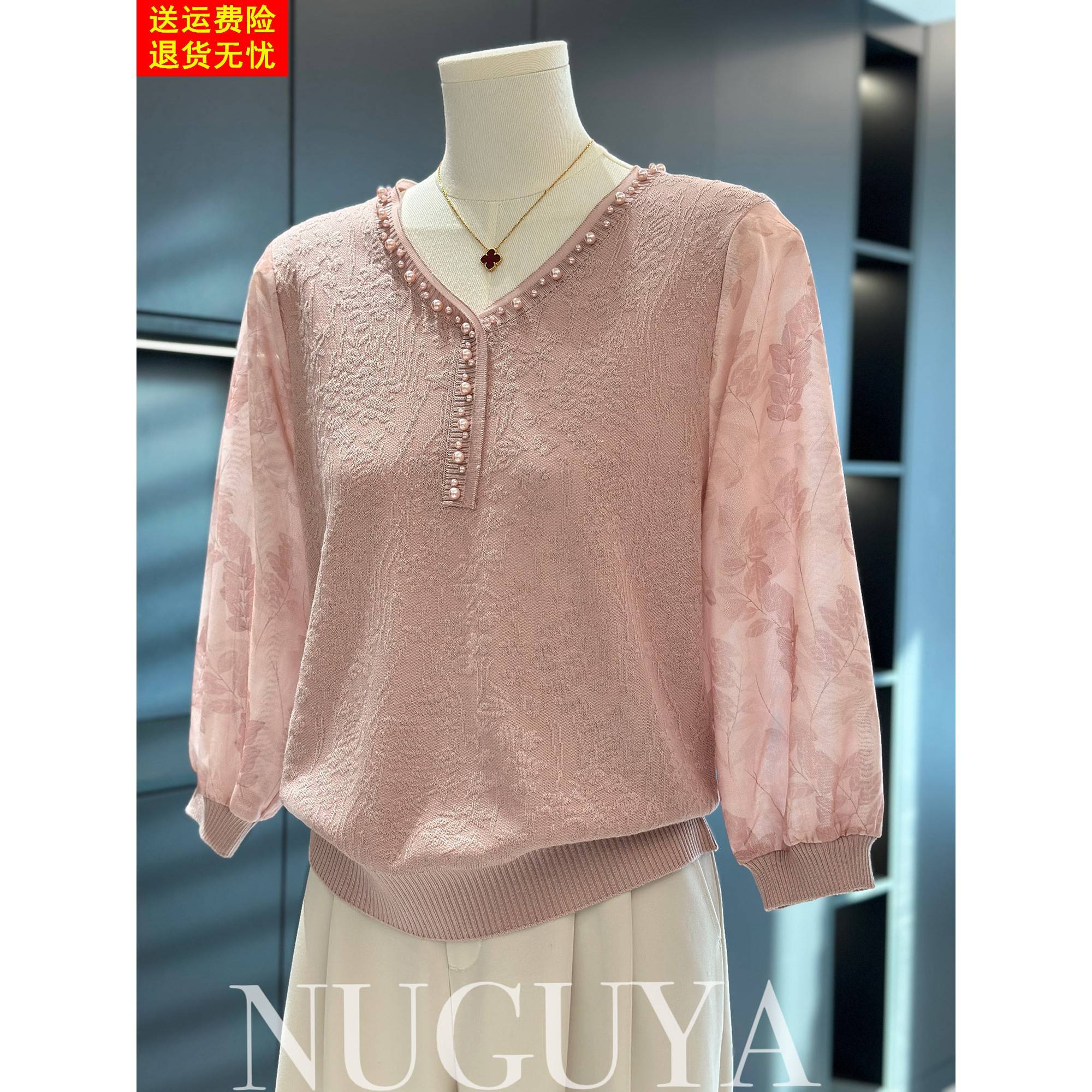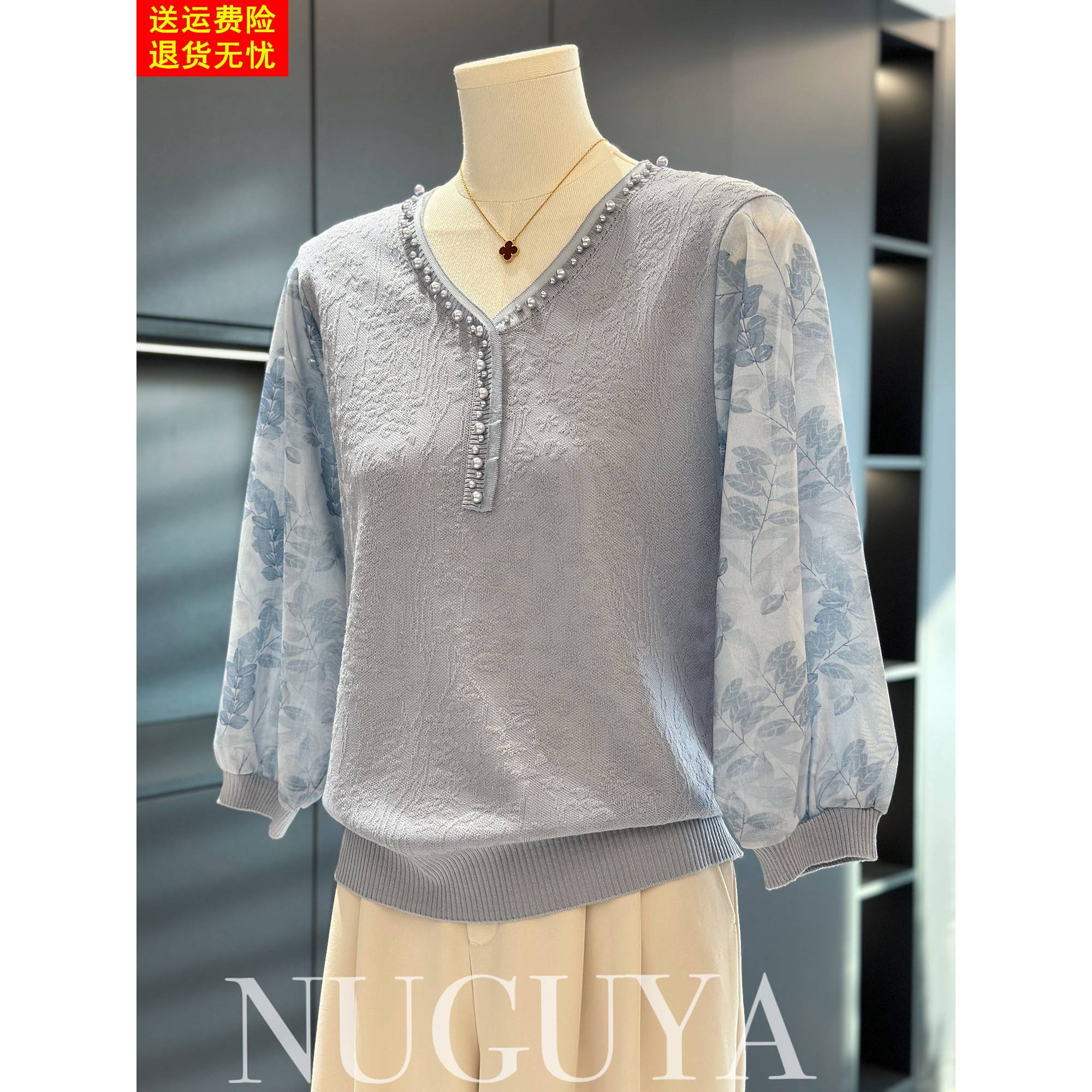时尚洋气雪纺针织衫女妈妈装秋装新款上衣百搭休闲中老年人打底衫