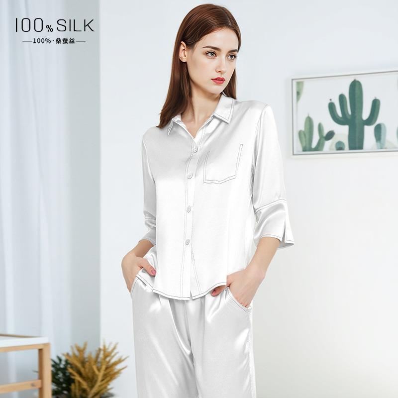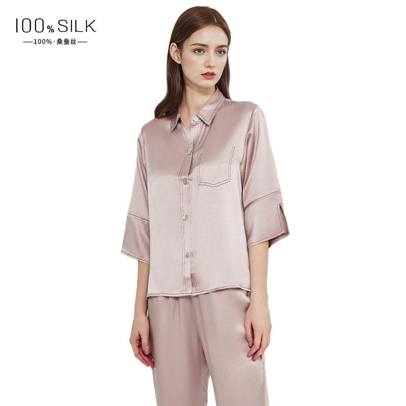 夏季薄款19姆米真丝睡衣女士100%桑蚕丝绸简约舒适凉感家居服套装