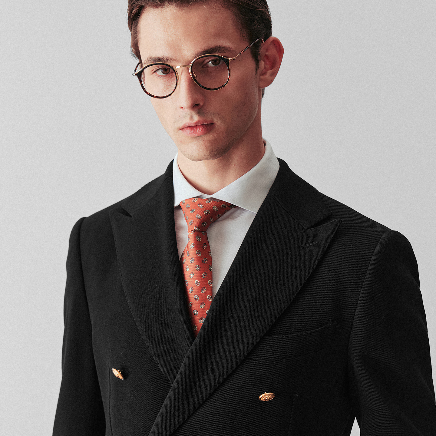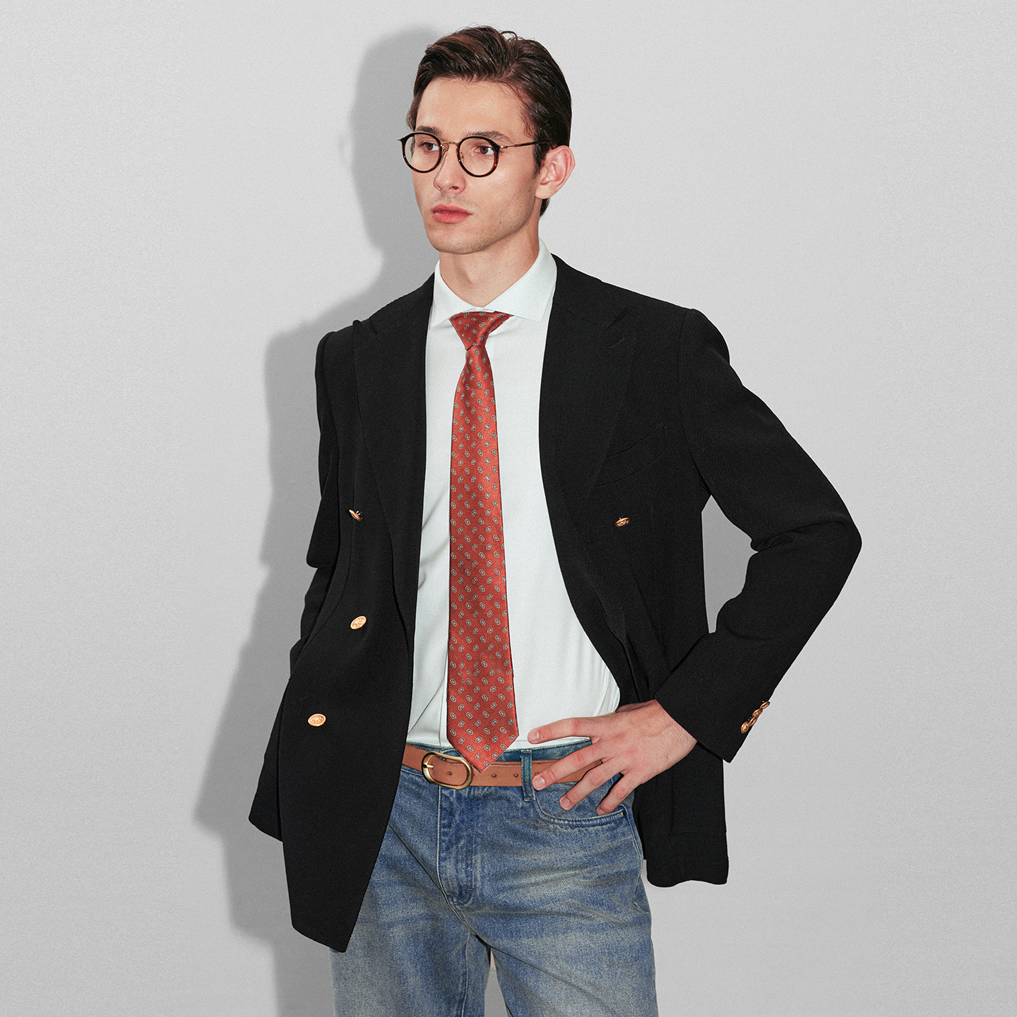 柏品纯羊毛布雷泽商务单西服男金属扣黑色双排扣西装上衣休闲外套