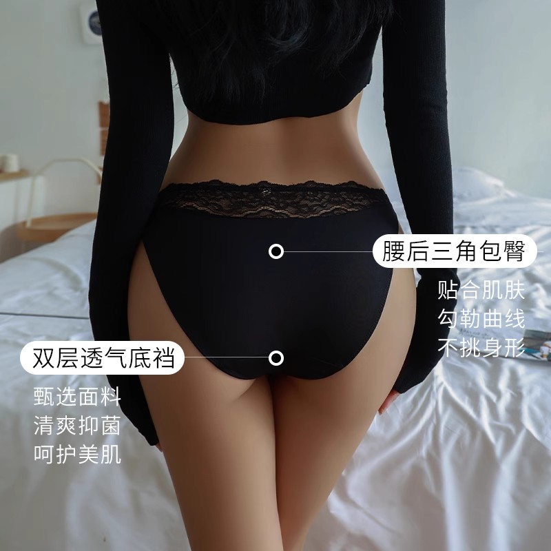 纯欲风法式性感细带蕾丝低腰无痕三角裤女舒适透气冰丝纯棉内裤女