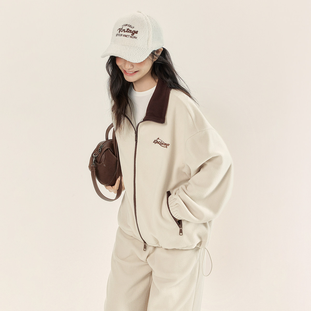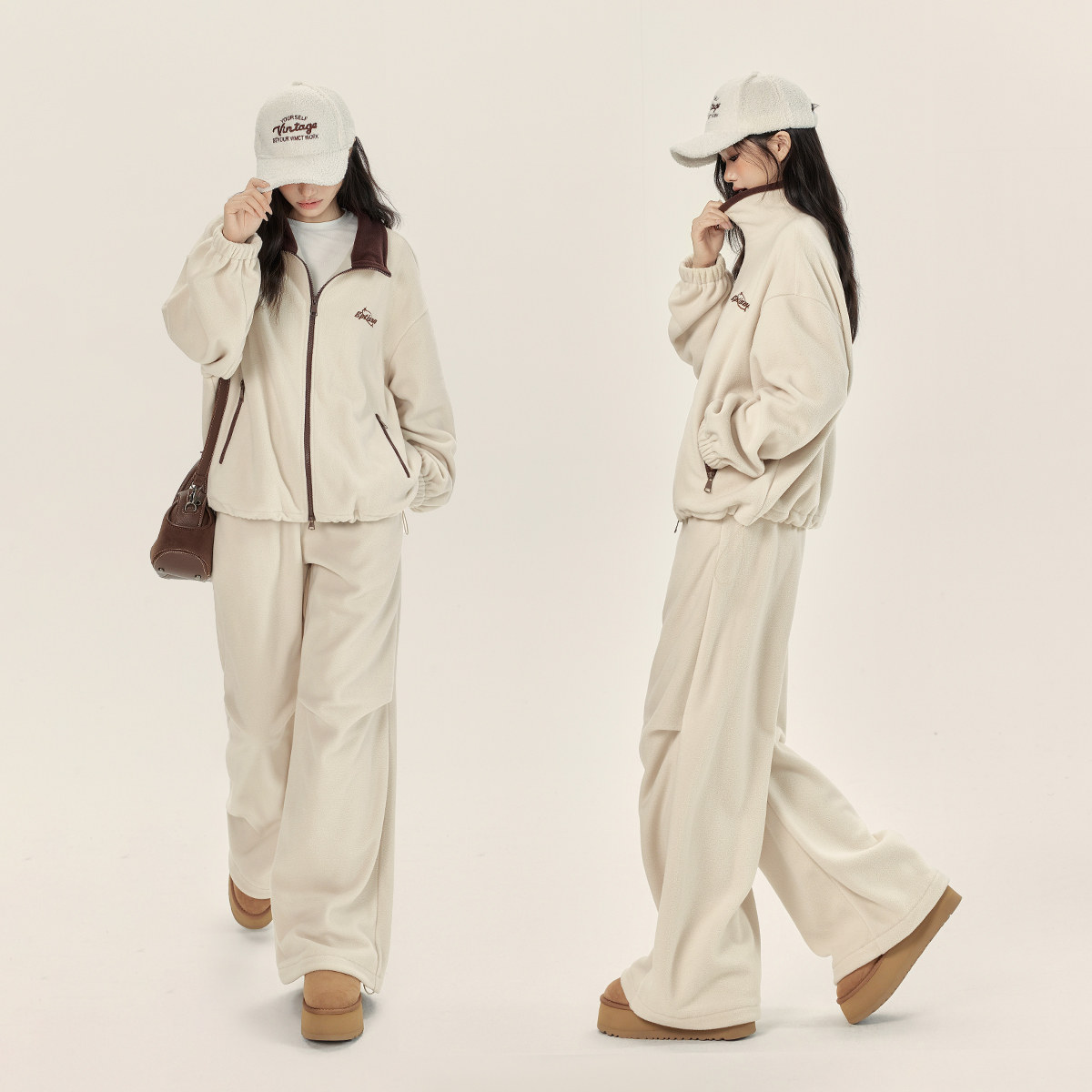 EPTISON运动套装女2025冬季新款宽松摇粒绒卫衣外套休闲裤一整套