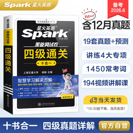 星火英语四级英语考试真题备考2026年6月四级真题试卷通关学习资料大学英语cet4四六级词汇单词书阅读听力作文翻译专项训练模拟题