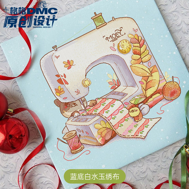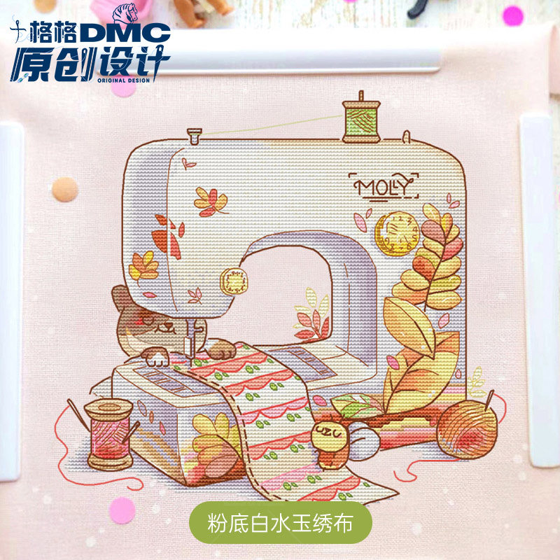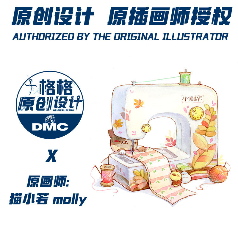 十字绣法国dmc绣线套件 猫小若 molly 11月原创设计 猫猫缝纫机