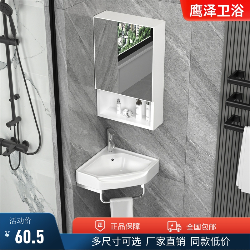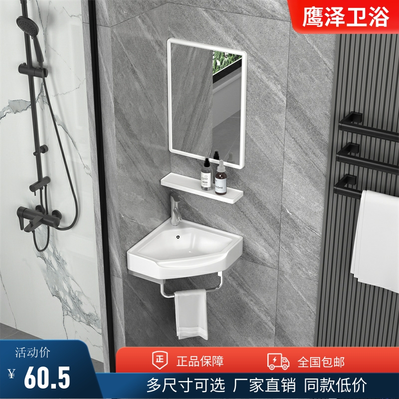 卫生间挂墙式洗手盆柜组合陶瓷三角洗脸盆转角小户型阳台面盆迷你