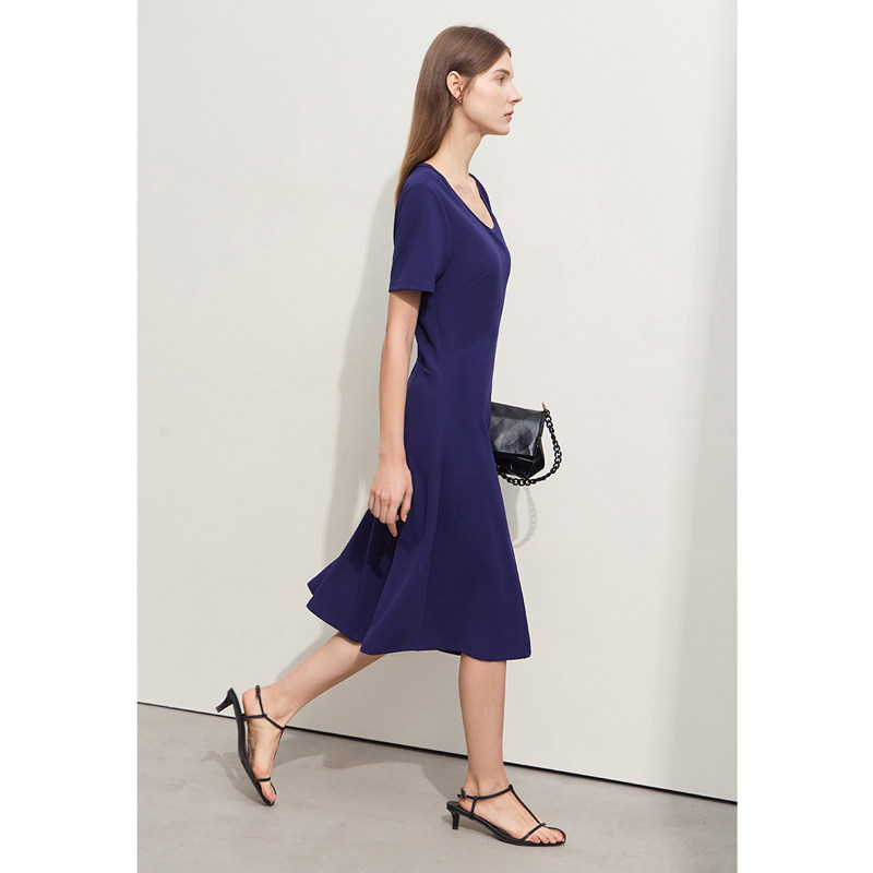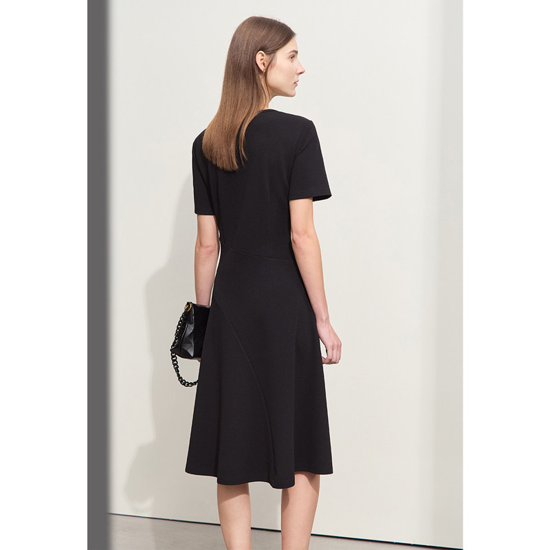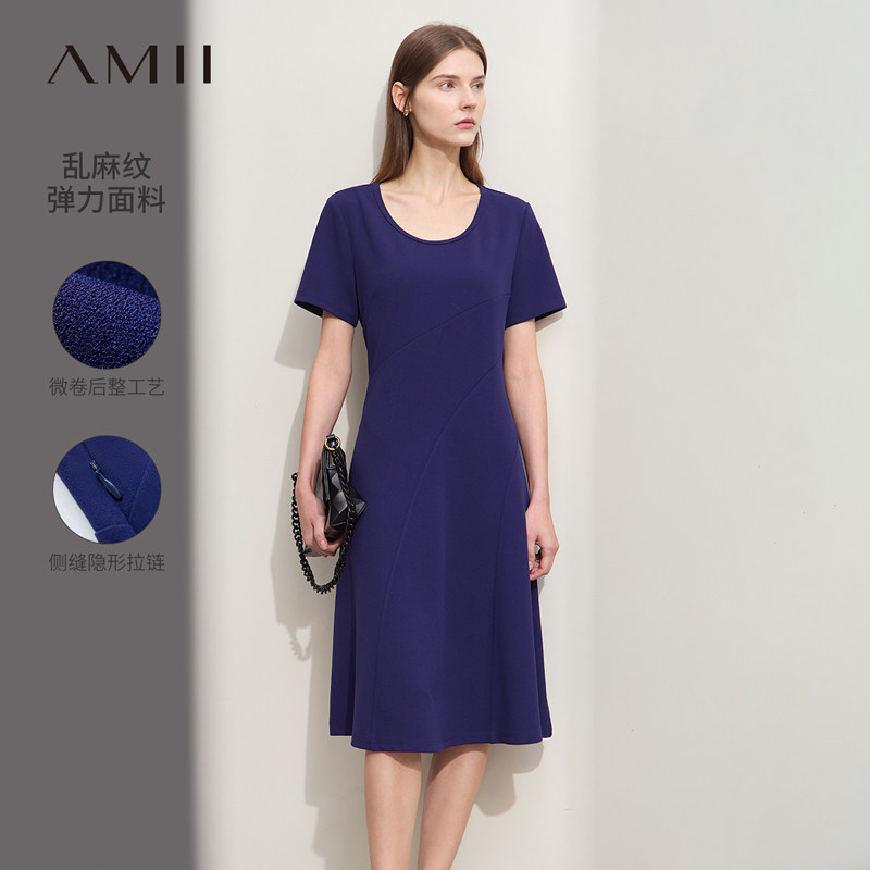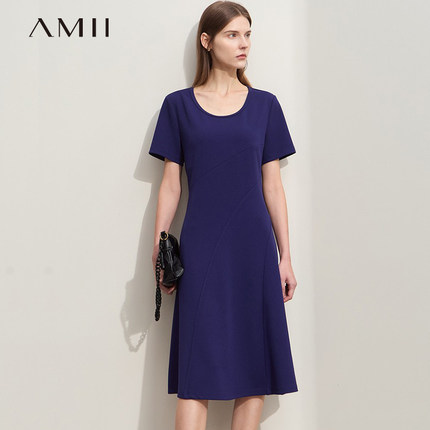 Amii法式收腰连衣裙女夏天高腰显瘦梨形身材a字正肩短袖弹性裙子