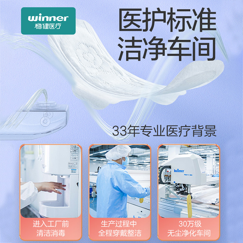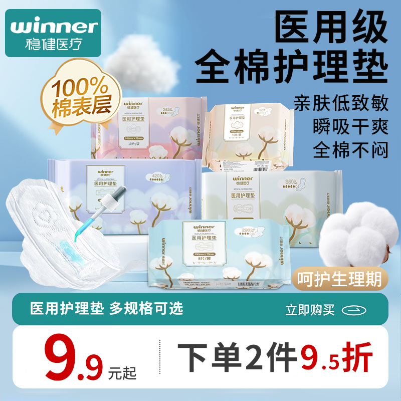 稳健医用护理垫成人卫生巾形姨妈巾械字号医疗级日夜纯棉妇科护垫