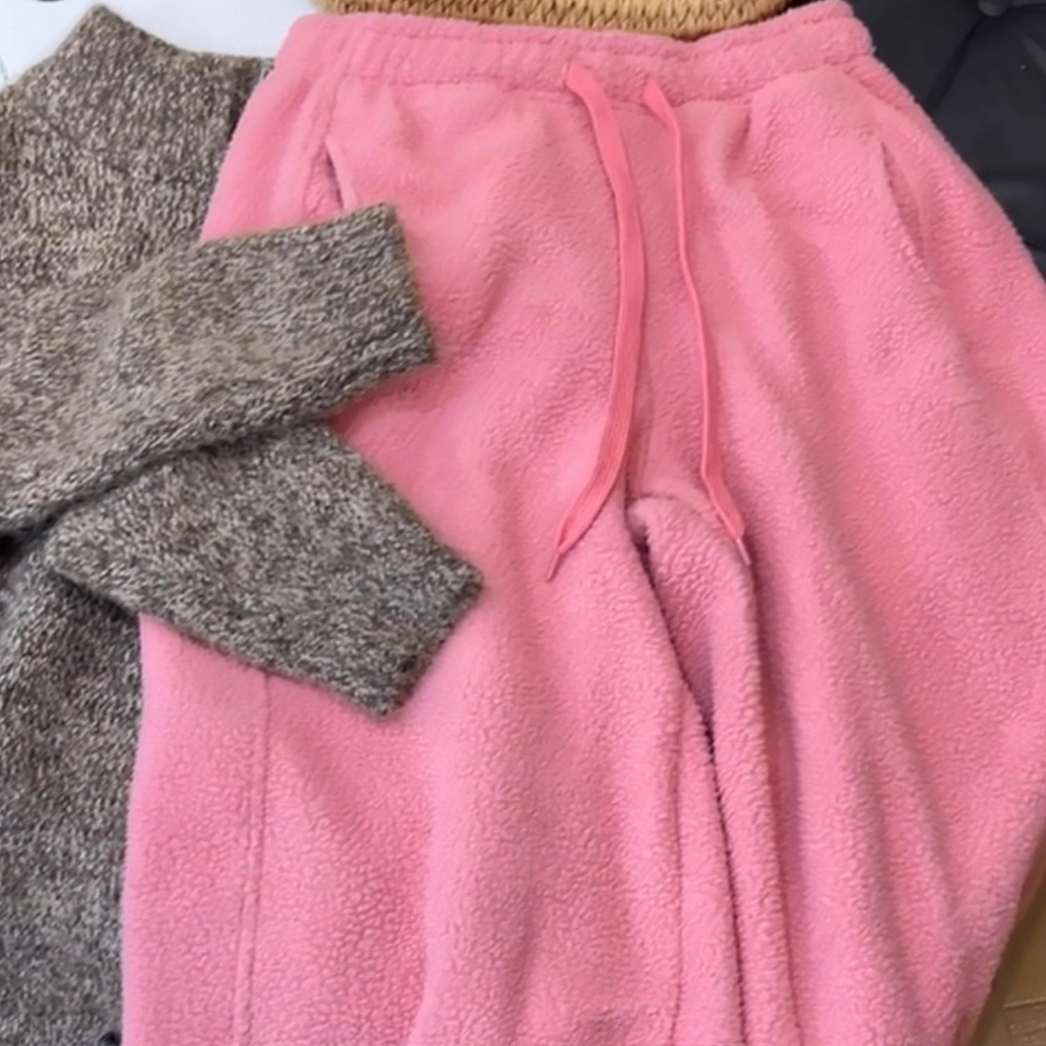 奥特莱斯~清仓外贸慵懒风粉色加绒加厚束脚裤女2025冬韩系休闲裤