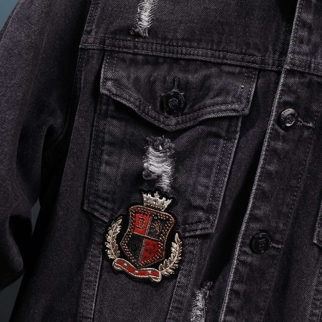 秋冬款牛仔外套男士工装宽松潮牌开衫休闲男上衣破洞翻领夹克