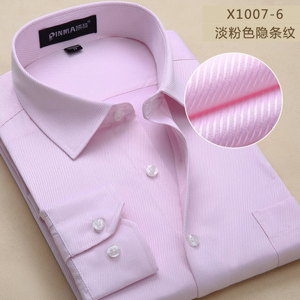 秋季薄款衬衫男长袖郎伴郎结婚装职业工装新浅粉色衬衣西装打底衫