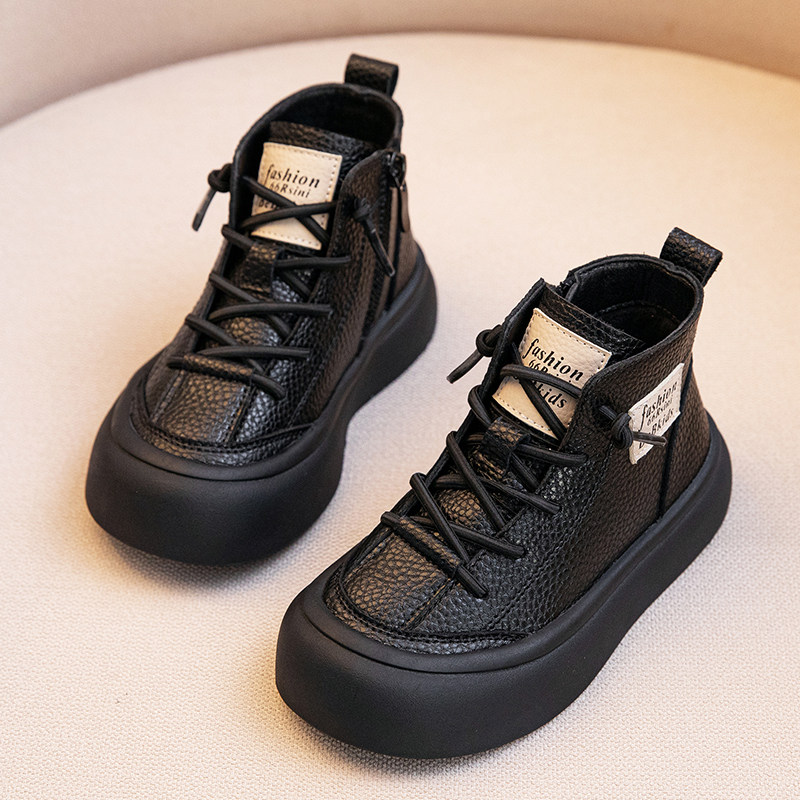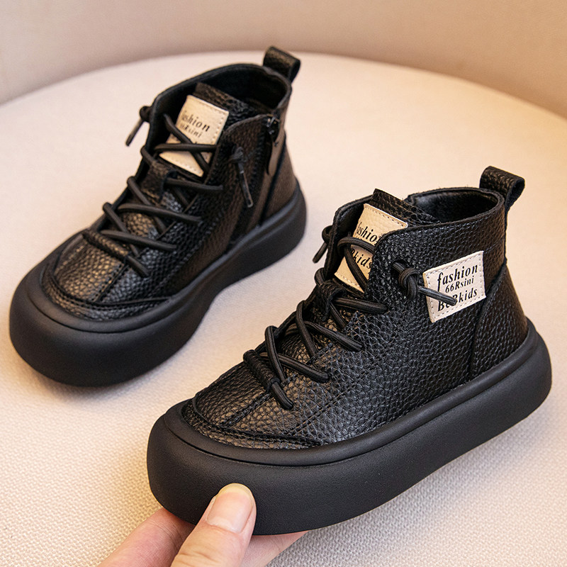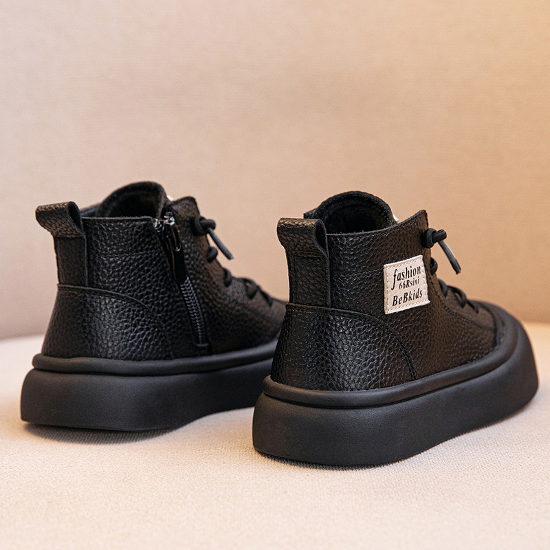 ABC男童真皮高帮短靴2025冬季款加绒加厚二棉短靴宝宝保暖雪地棉