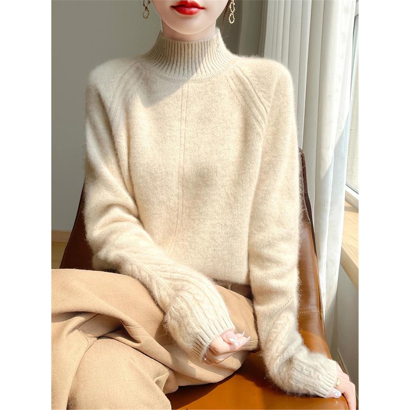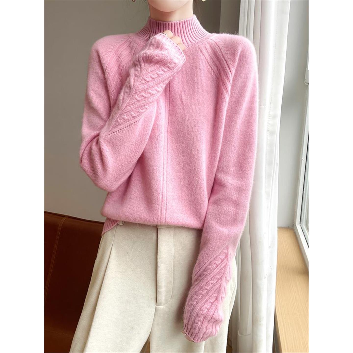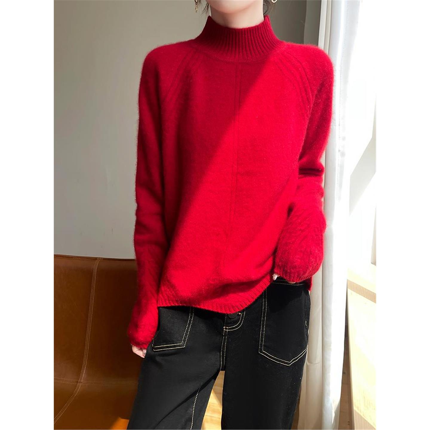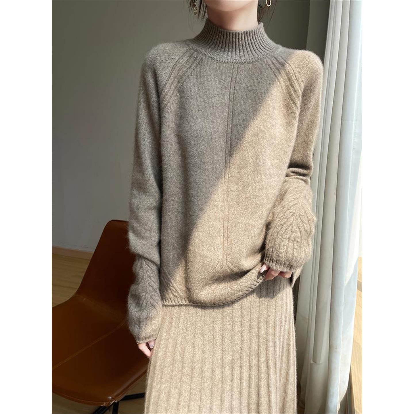 秋冬加厚宽松100%纯羊毛针织衫半高领插肩袖羊绒衫女长袖套头毛衣
