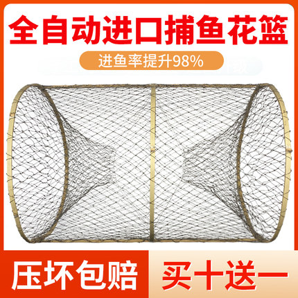 捕鱼花篮鱼笼只进不出网笼黑鱼甲鱼笼圆形折叠地网渔笼扑鱼笼鱼网