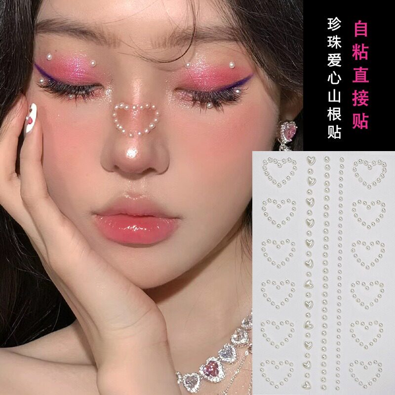 墨雨云间同款珍珠贴面妆脸部贴钻贴纸儿童化妆贴脸饰品舞台妆亮钻
