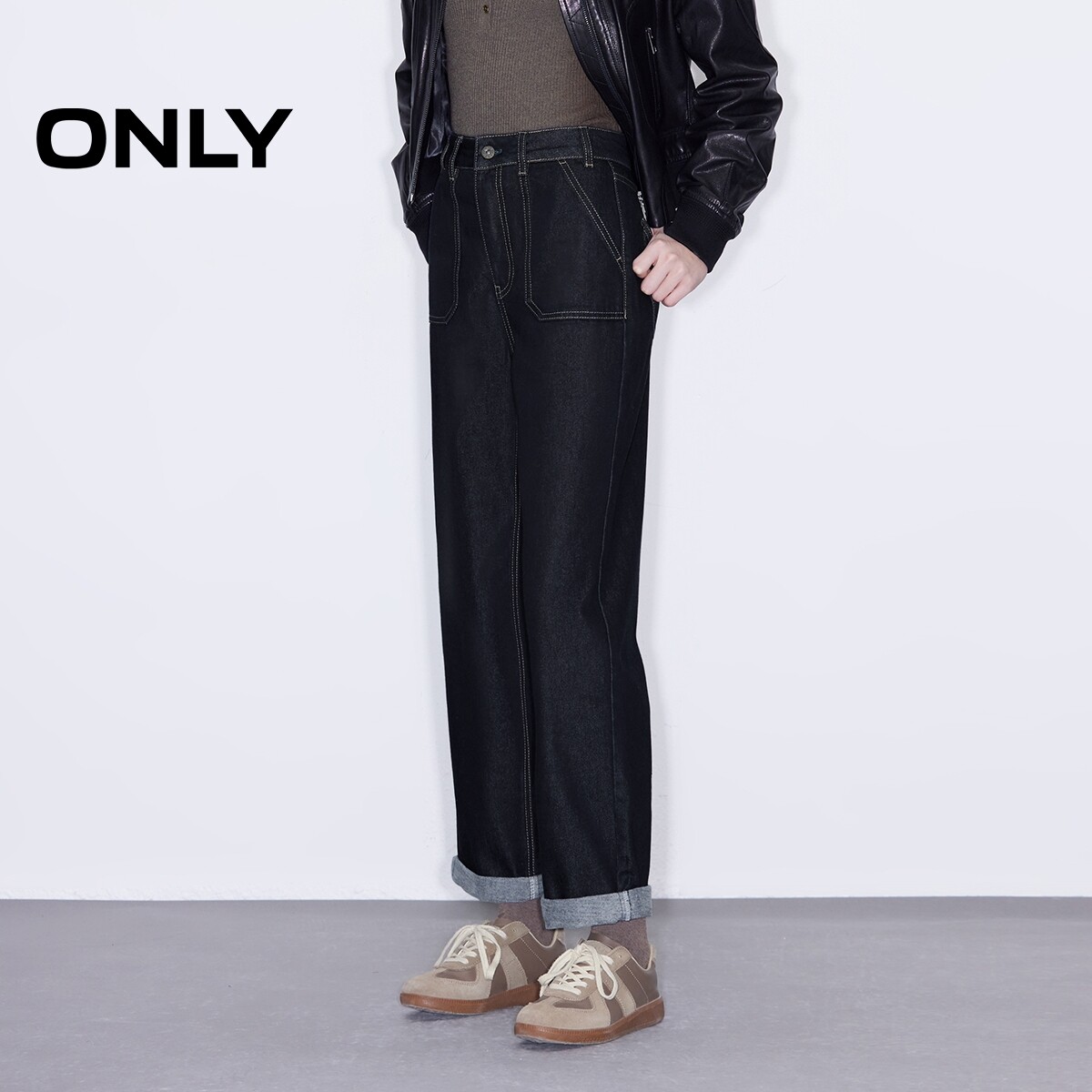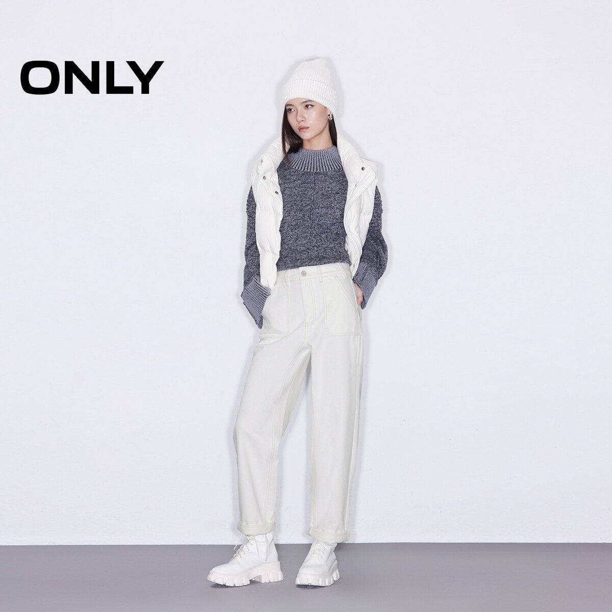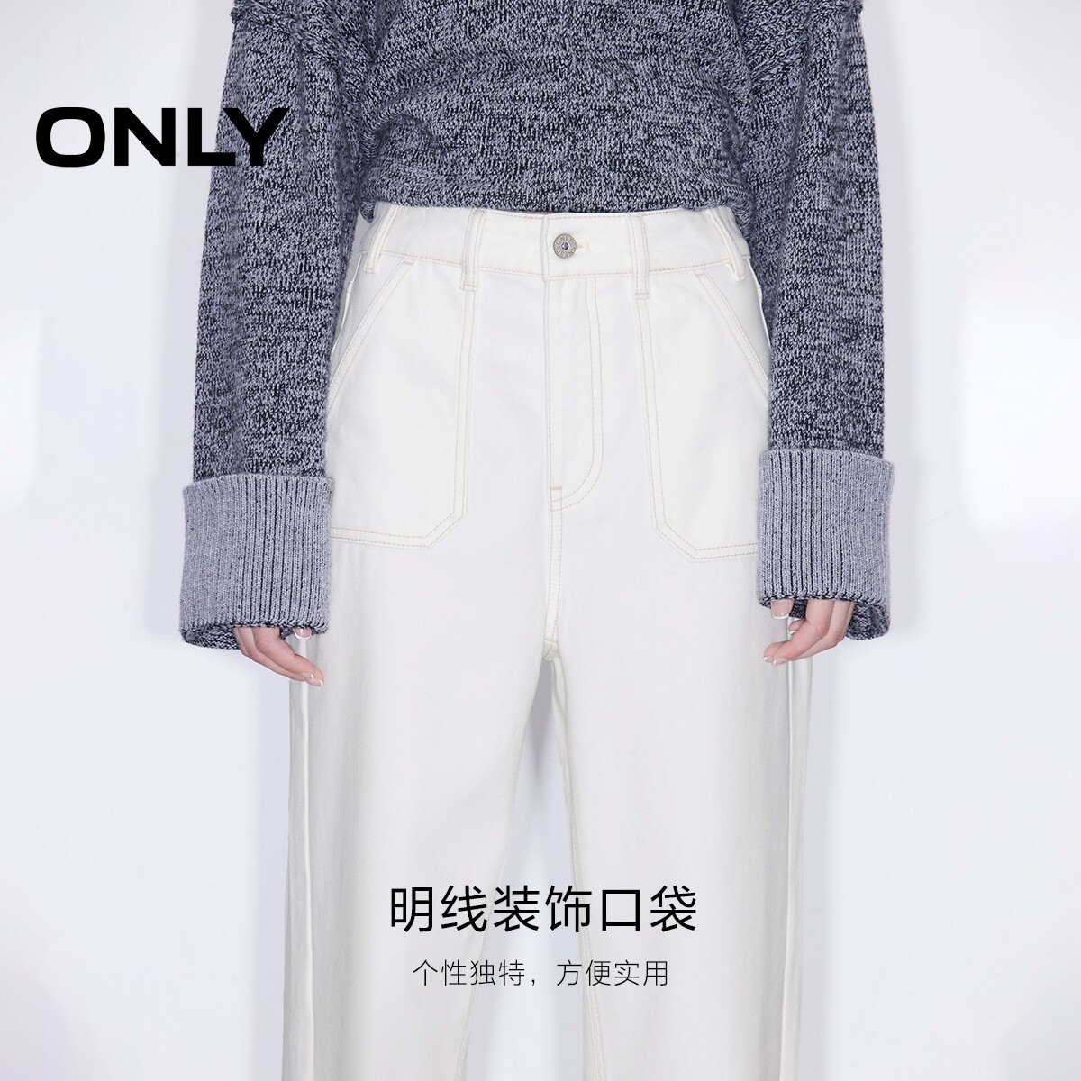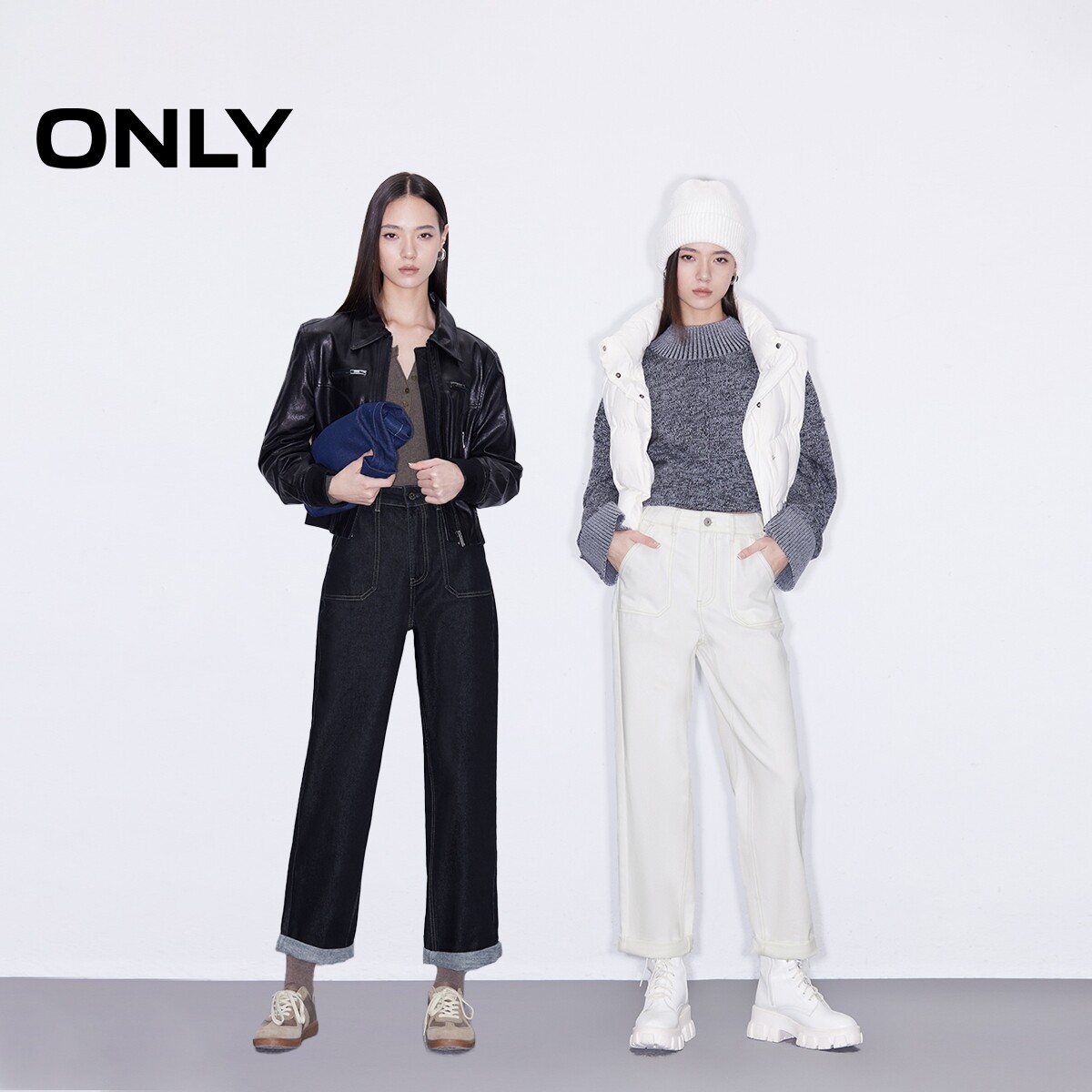 【ONLY奥莱】秋冬简约百搭含羊毛高腰九分阔腿牛仔裤女
