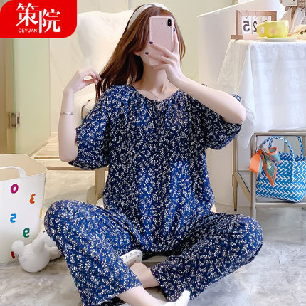 策院女棉绸短袖长裤家居服