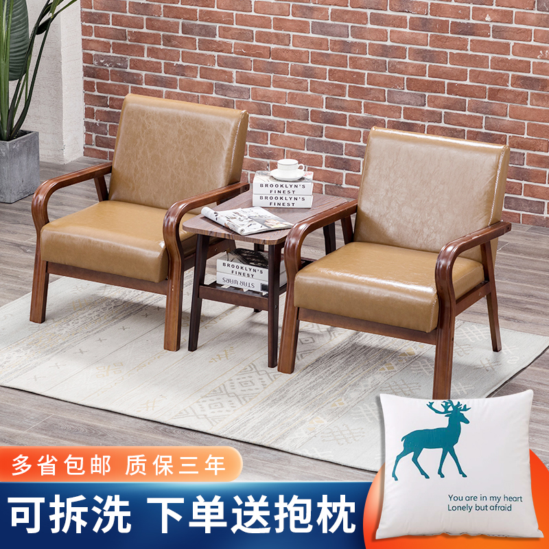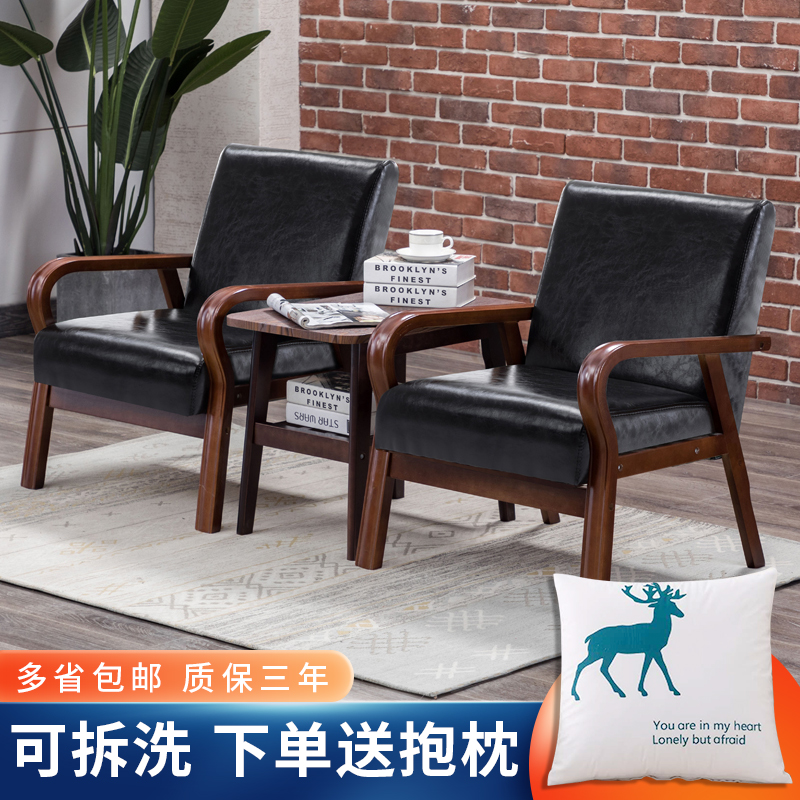阳台休闲宿舍寝室卧室小户型客厅单人实木皮质小沙发椅子茶几组合