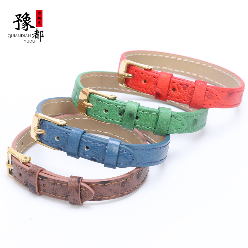 鸵鸟皮男女皮绳不锈钢扣子简约