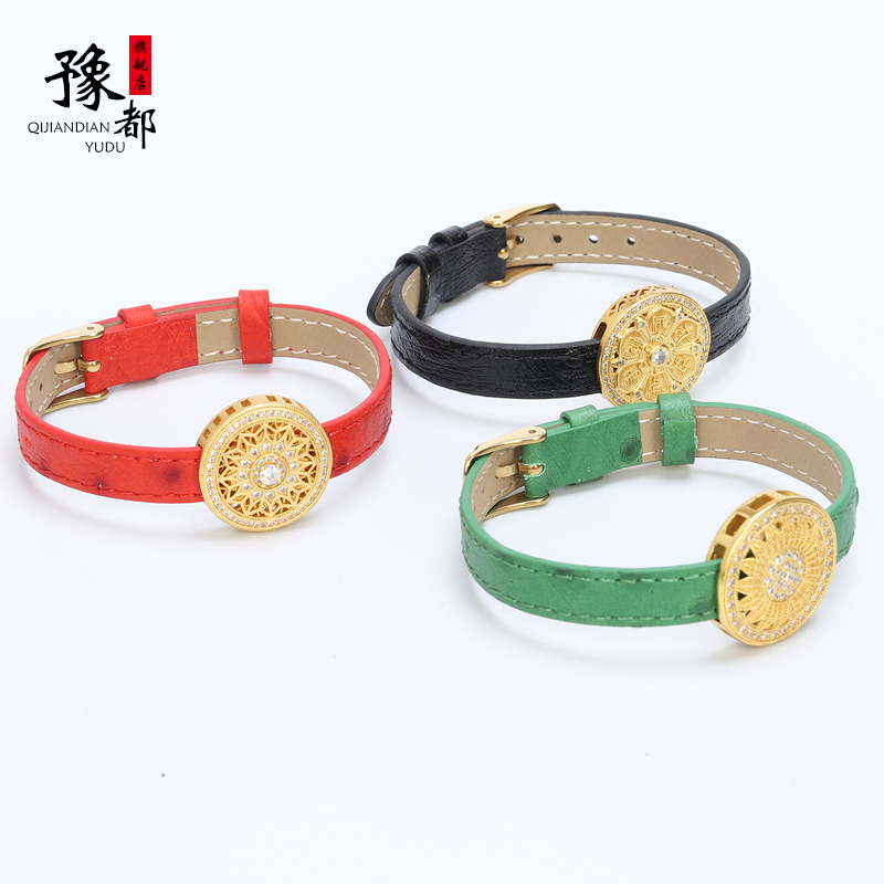 鸵鸟皮表带手链手环一条过手腕带真皮绳首饰可穿黄金表盘八宝罗盘