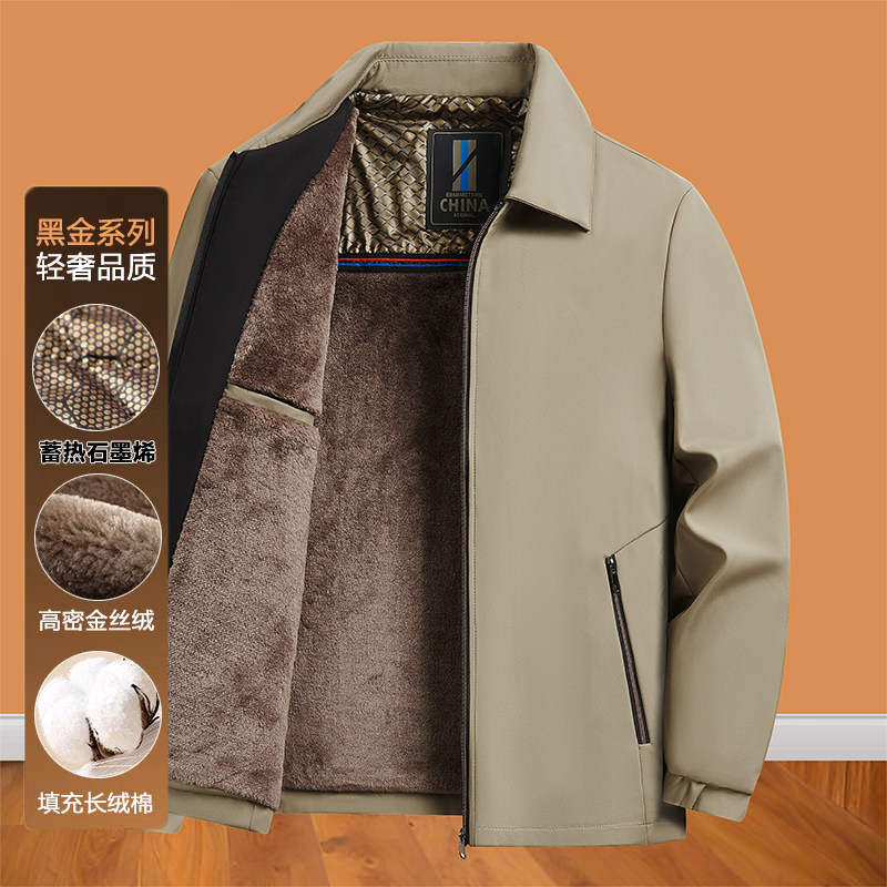 秋冬保暖爸爸中老年人休闲夹克冬装中年男士加绒加厚翻领宽松外套