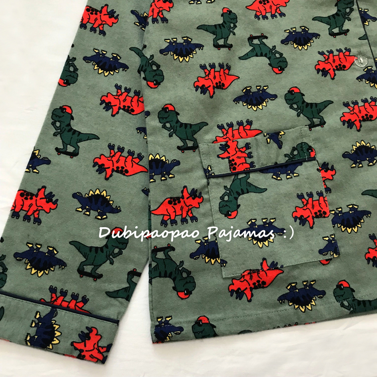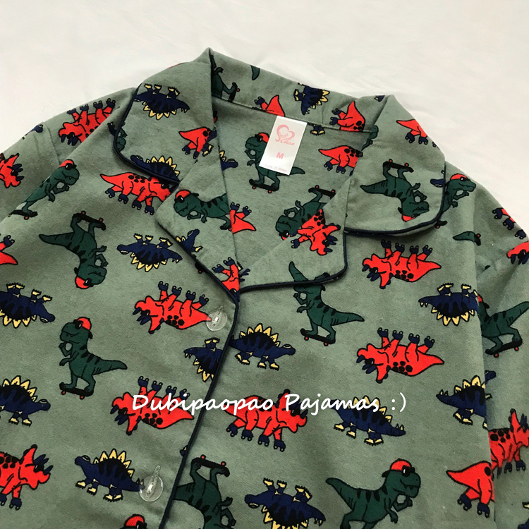 『恐龙乐园』卡通纯棉磨毛睡衣女款情侣春秋冬长袖长裤男士家居服