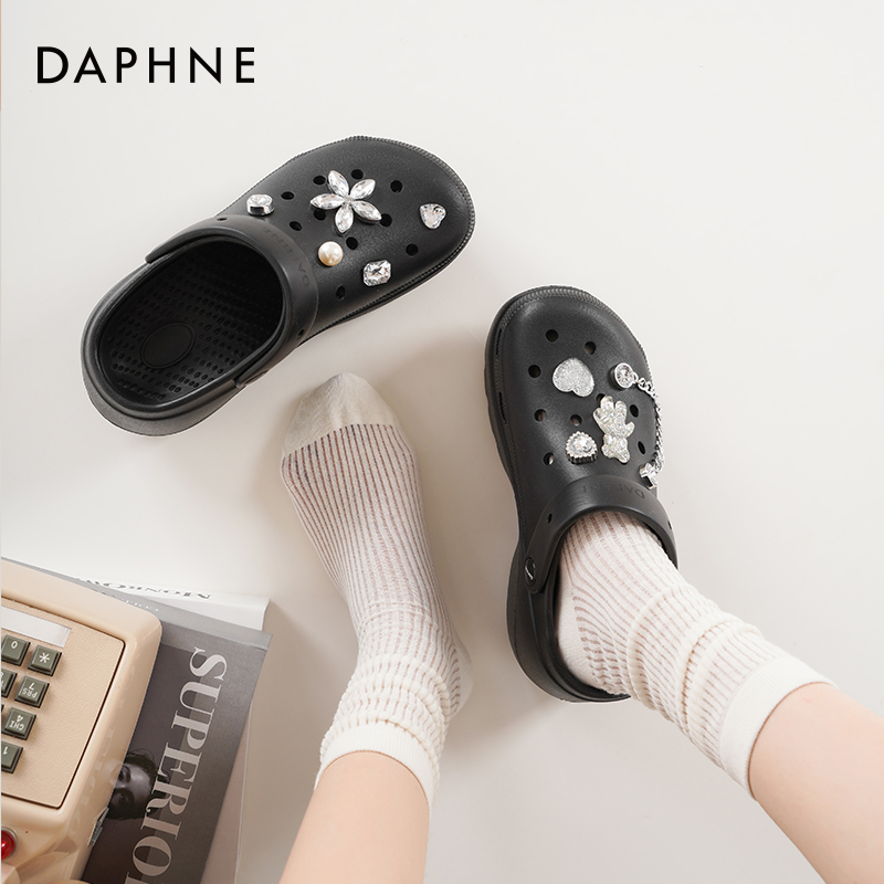 达芙妮厚底洞洞鞋女款夏季2025新款外穿凉拖鞋增高防滑沙滩凉鞋女
