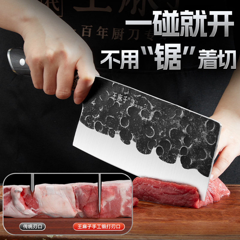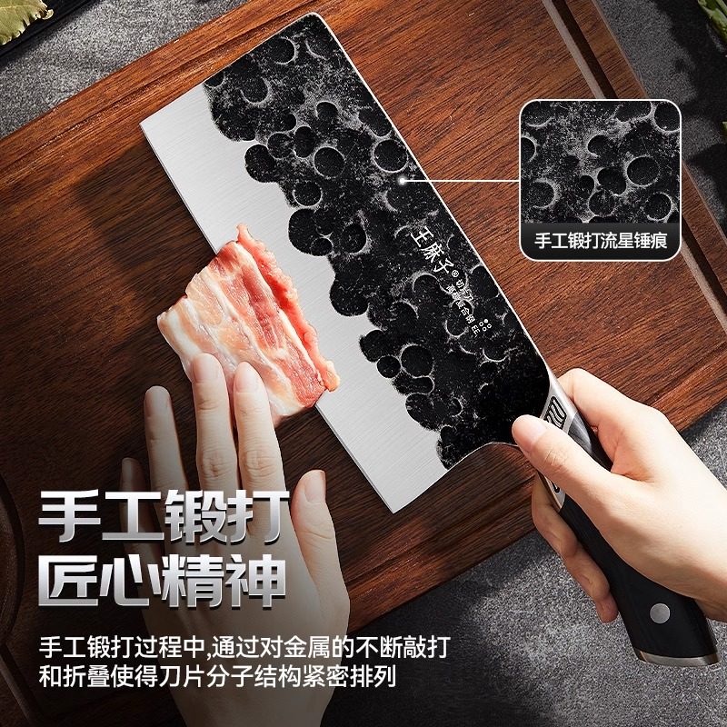 王麻子10铬锻打菜刀斩切两用刀具厨师家用砍骨锋利切片切肉刀锋利