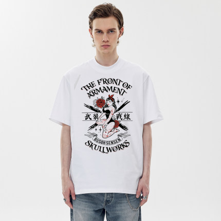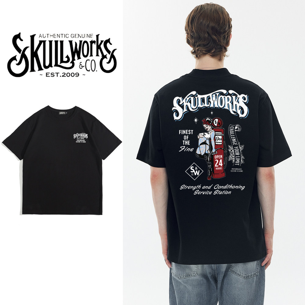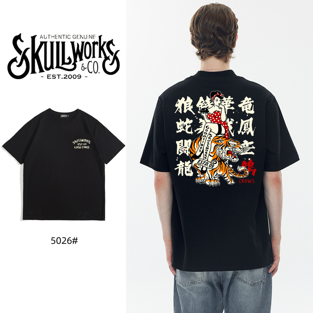 武装战线潮牌短袖T恤夏季纹身半袖机车女大蜜skullworks美式复古