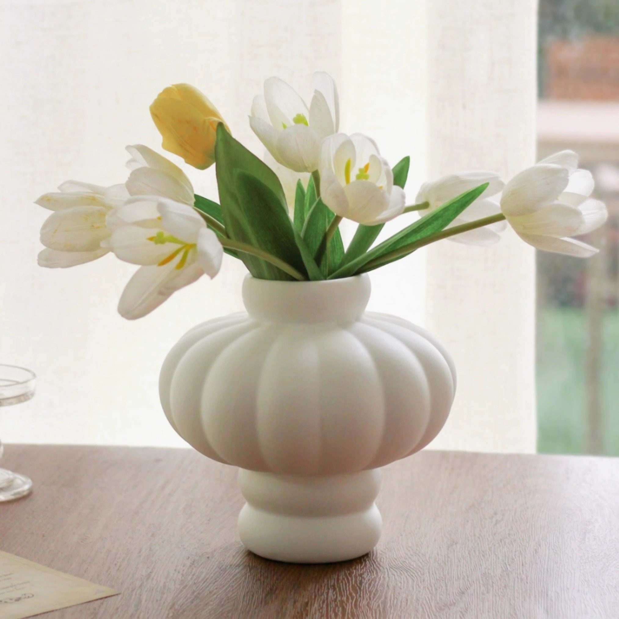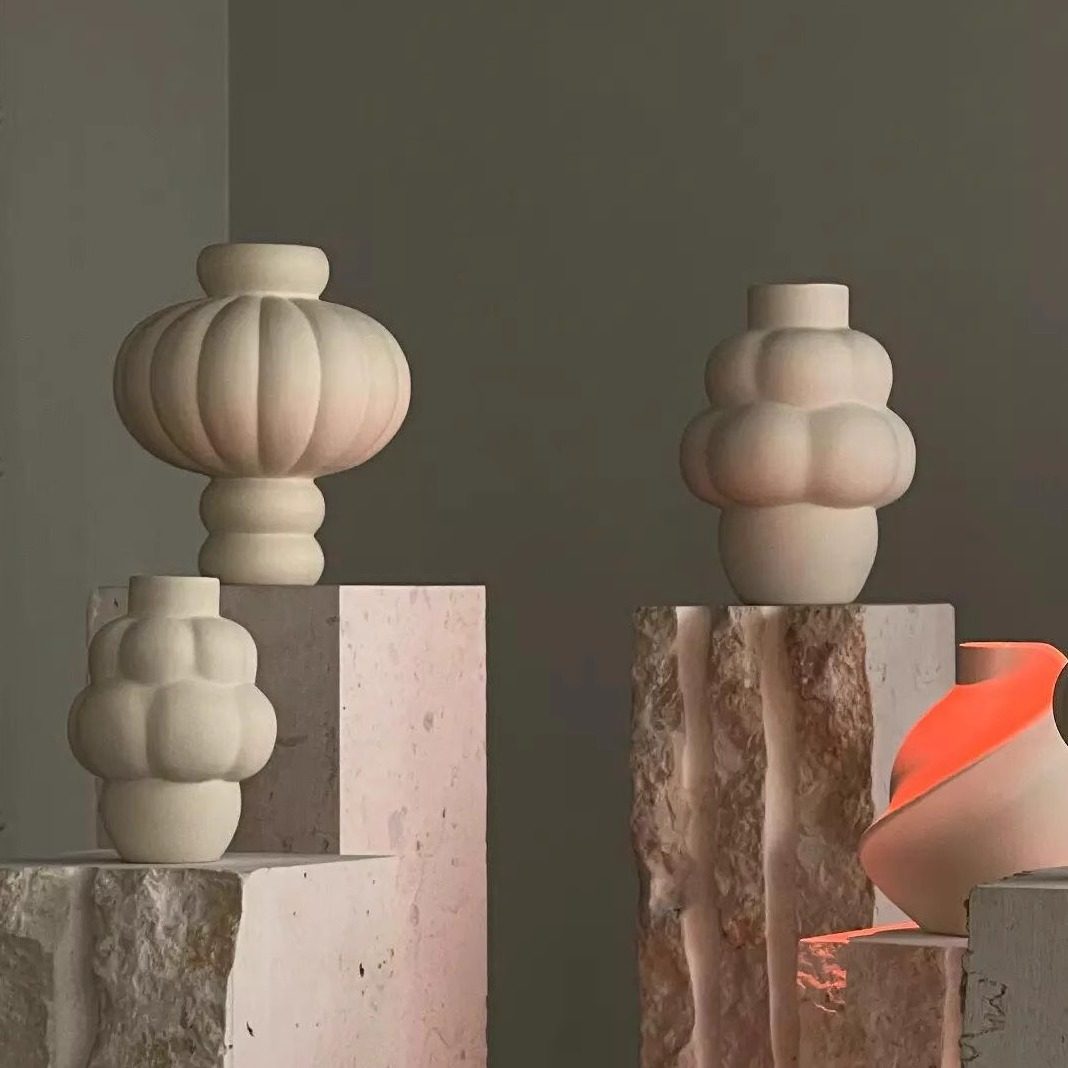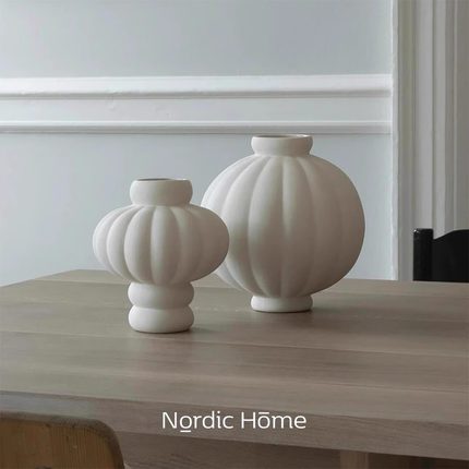 北欧丹麦灯笼造型陶瓷花瓶白色奶油风现代民宿装饰花器样板间摆件