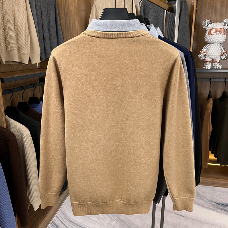 恒源祥彩羊翻领毛衣男假两件加厚保暖中老年人爸爸装衬衫领针织衫