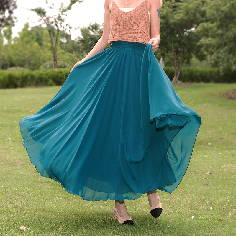 清仓价雪纺半身裙三层纯色大摆裙显瘦飘逸沙滩度假裙跳舞a字长裙