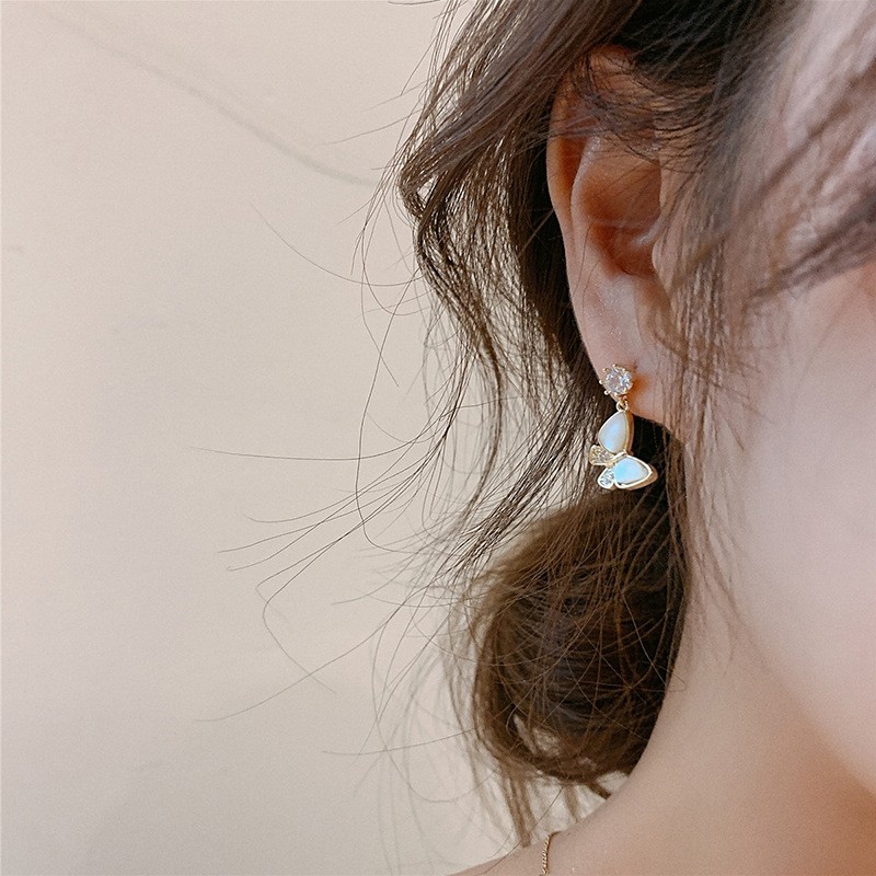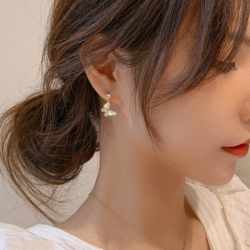 韩国春夏925银针耳钉简约滴油女小巧蝴蝶造型气质超仙高级感耳环
