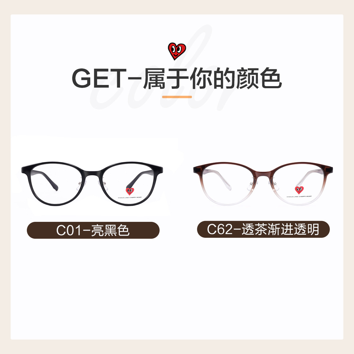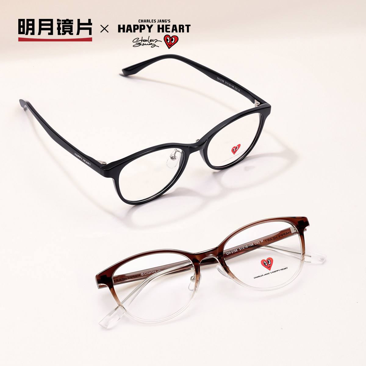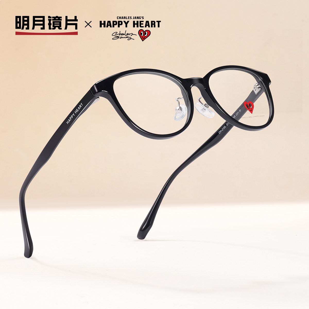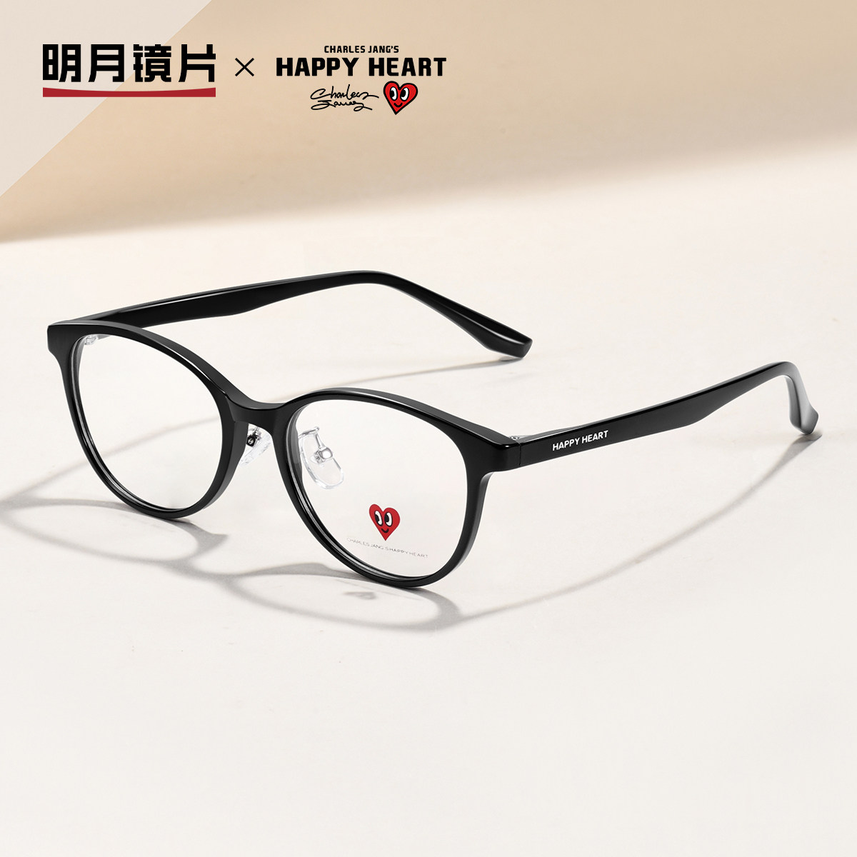明月查尔斯桃心猫眼圆框黑框素颜近视眼镜女可配度数成品镜CH2158