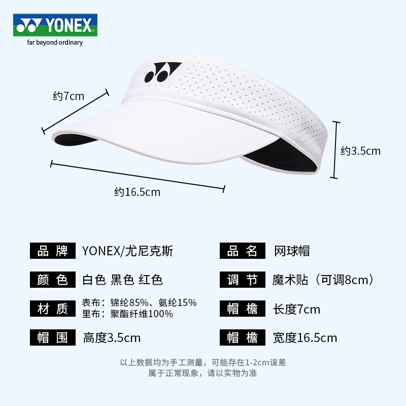 YONEX尤尼克斯羽毛球空顶帽无顶男女网球帽跑步运动帽夏季遮阳帽