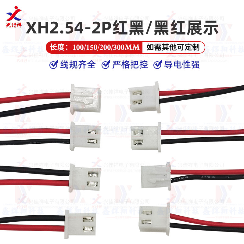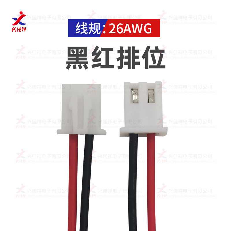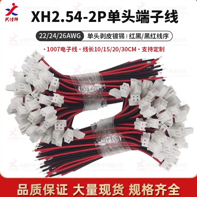 XH2.54mm单头镀锡端子线 2P红黑/黑红排位1007#22/24/26AWG电子线
