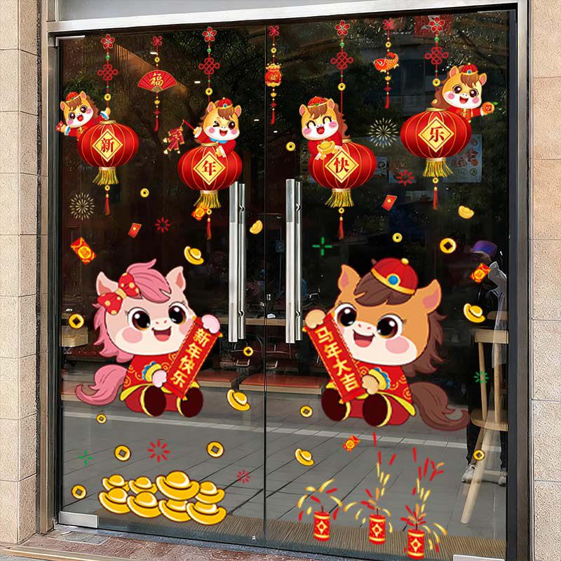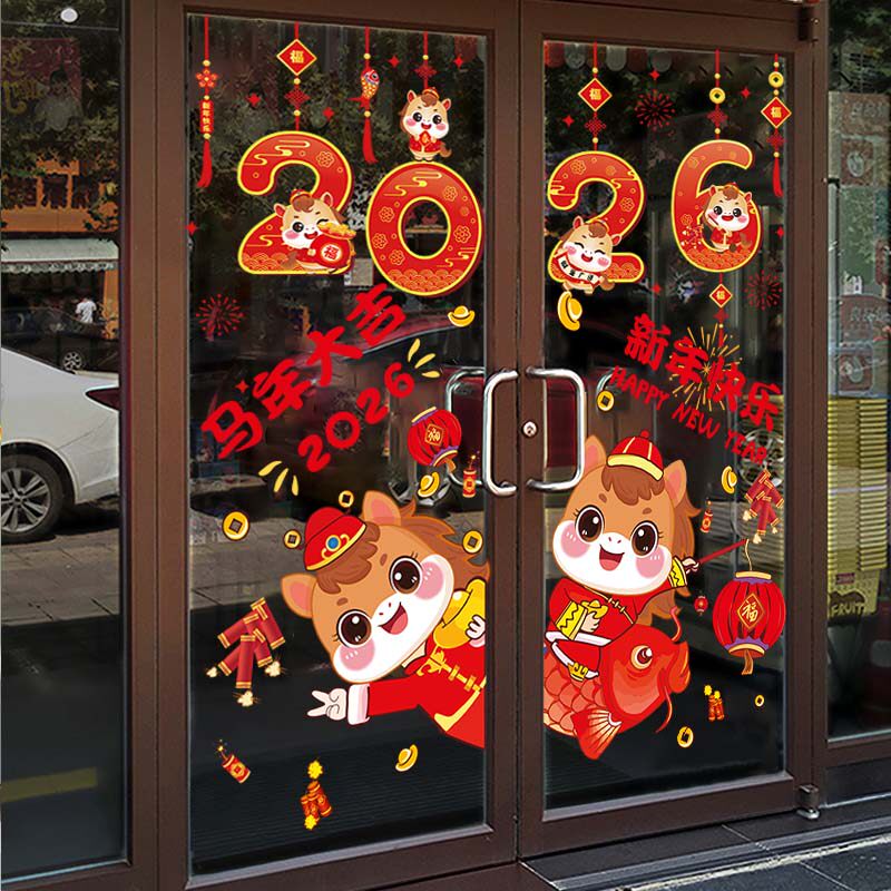 2026新年装饰贴纸马年快乐春节布置过年窗花福字静电贴玻璃门贴纸