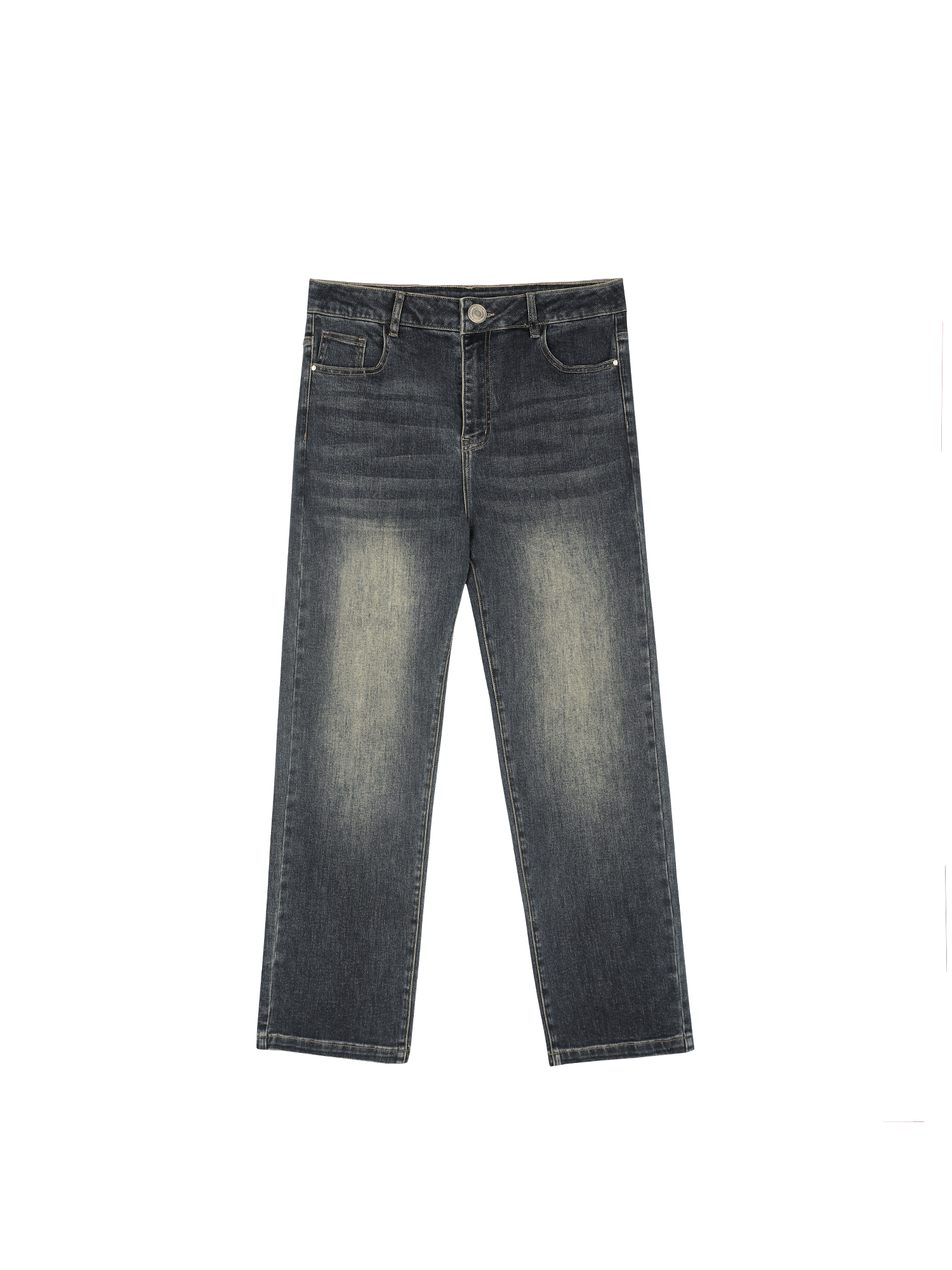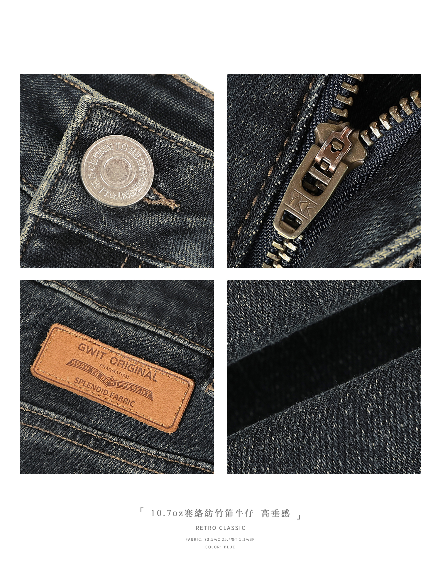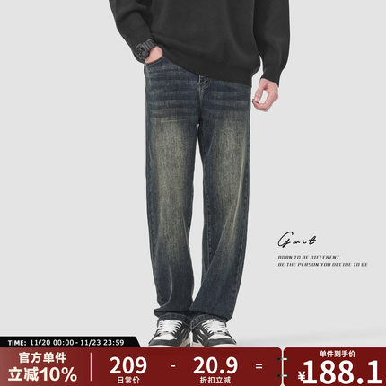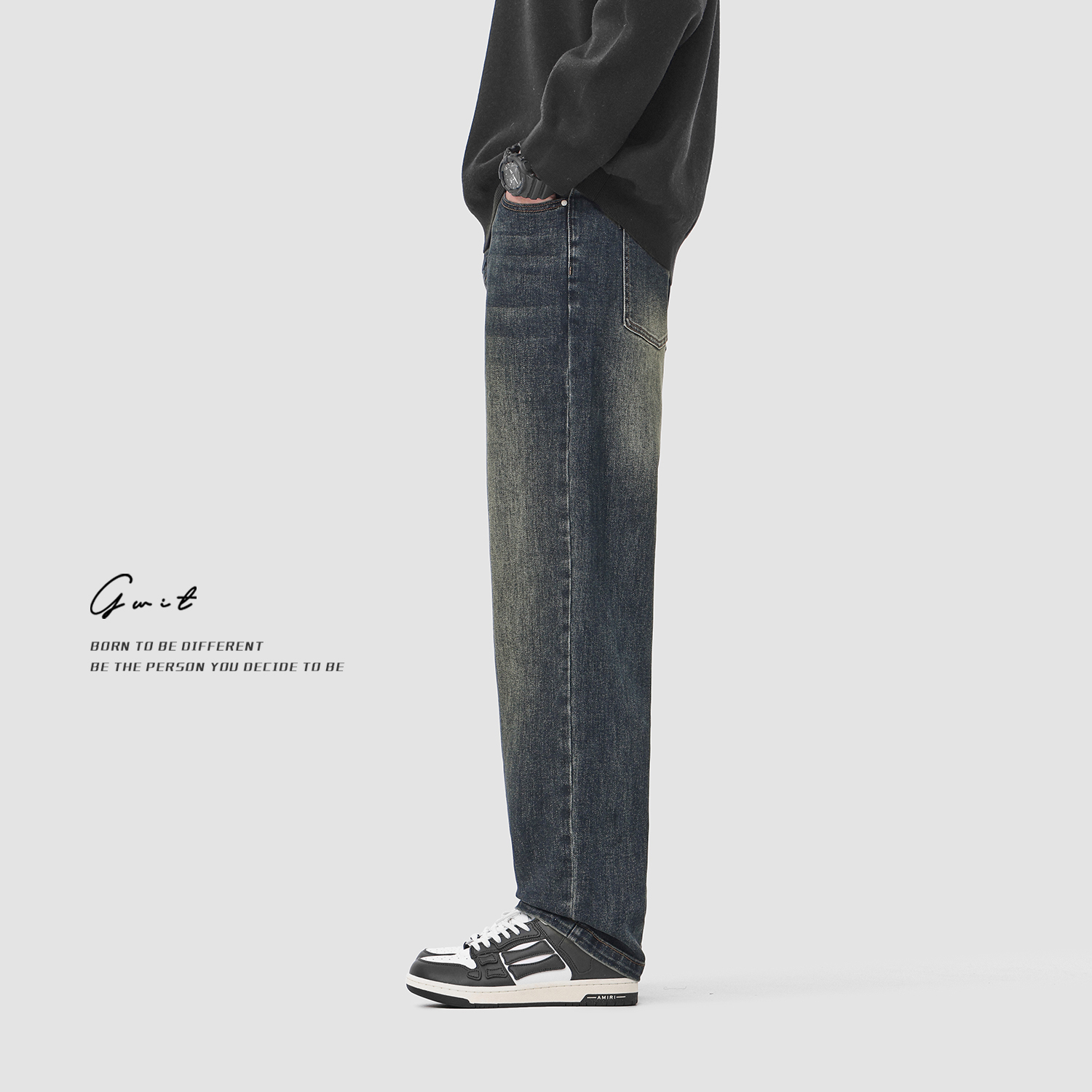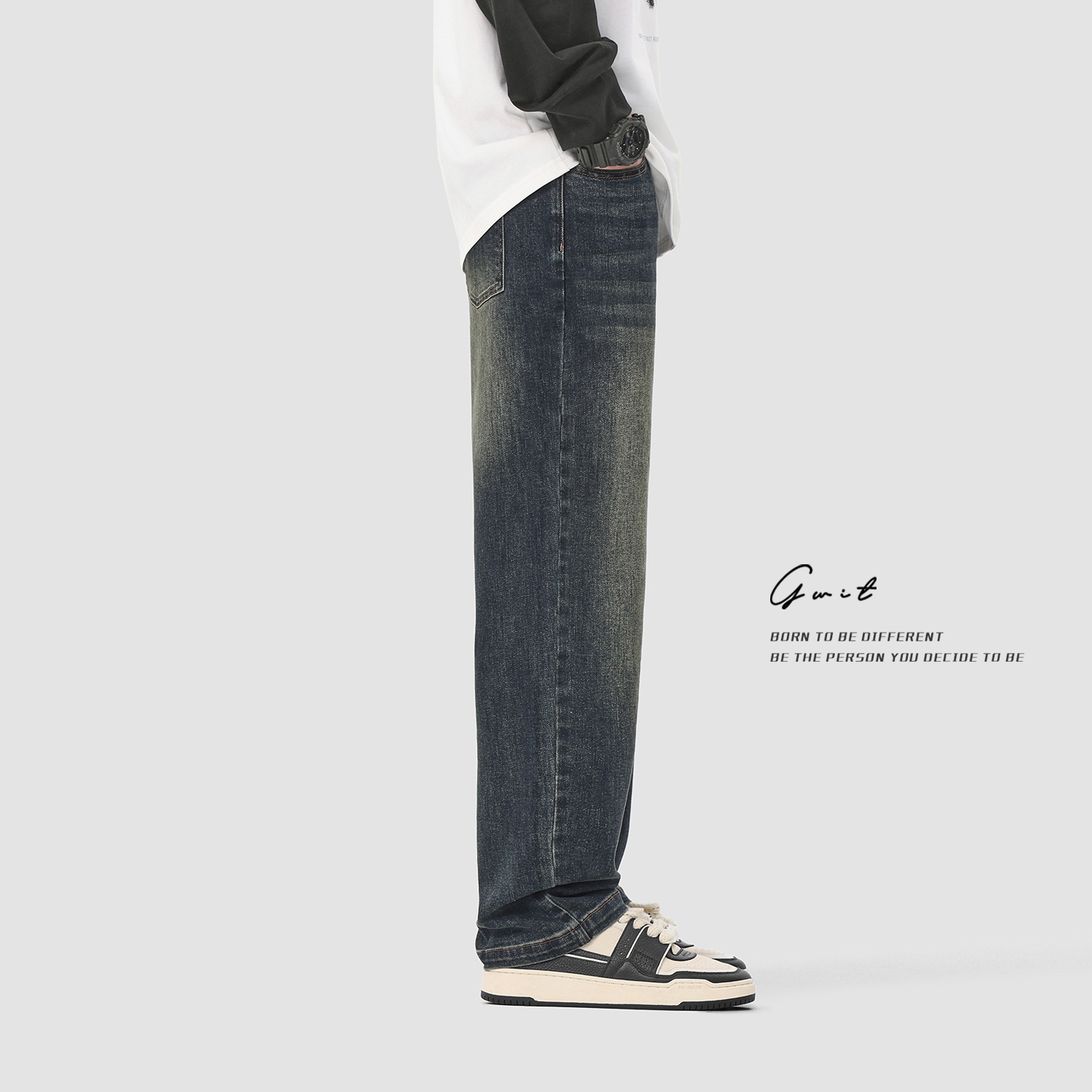 GWIT 经典色复古美式重磅石磨水洗做旧春秋直筒长裤休闲牛仔裤男