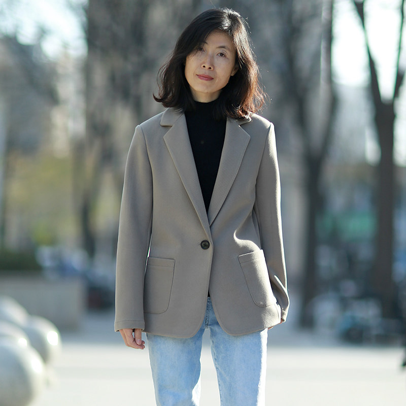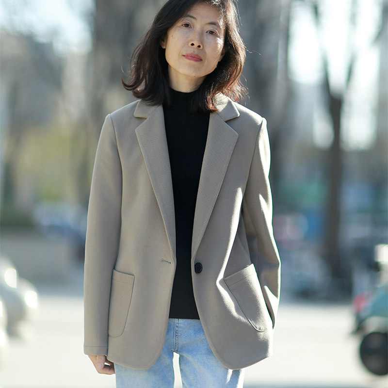 秋冬修身西装外套女单层厚款新款商务通勤无垫肩针织弹力正肩西服
