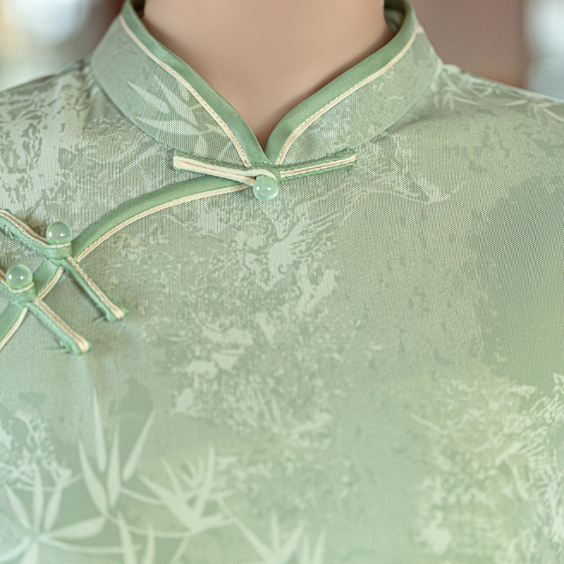 高考送考旗袍妈妈绿色夏季连衣裙